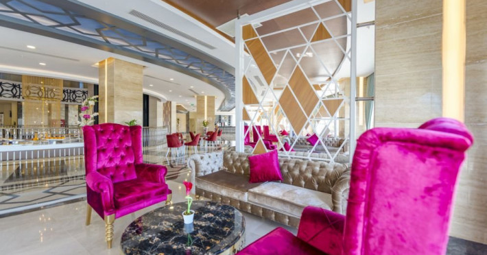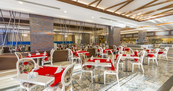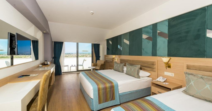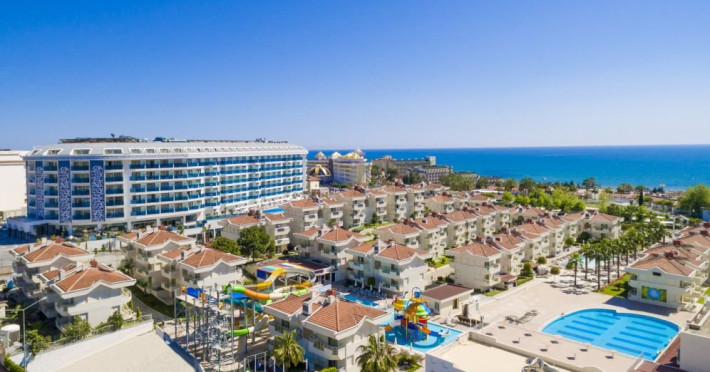 Facilitati hotel: Hotelul ofera oaspetilor sai urmatoarele facilitati: piscine exterioare, aquapark cu 7 tobogane, zona aquapark pentru copii, baruri, club de noapte, piscina interioara, centru welness, magazine, darts, tenis de masa, centru fitness, program de animatie, sauna, baie turceasca, mini club, piscina pentru copii si aquapark.