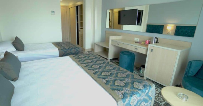 Facilitati hotel: Oaspetii beneficiaza de sezlonguri si umbrele pe plaja si la piscina, tobogane atat pentru copii cat si pentru adulti, diferite programe de animatie, divertisment, darts, tenis de masa, volei, centru fitness, baie turceasca, sauna, masaj (contra cost), 4 restaurante ( dintre care 3 A La Carte).