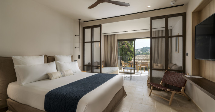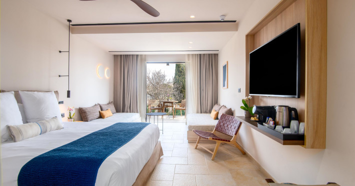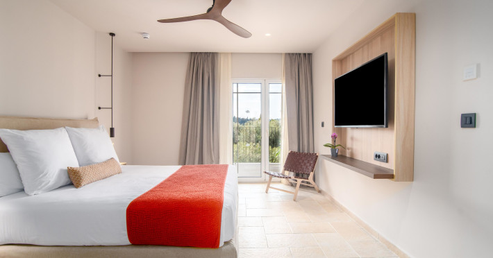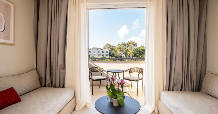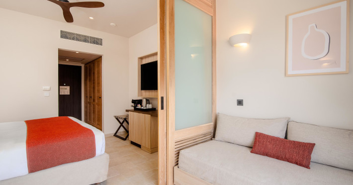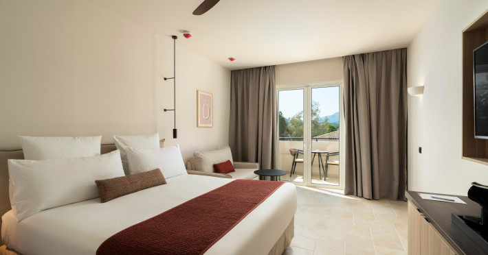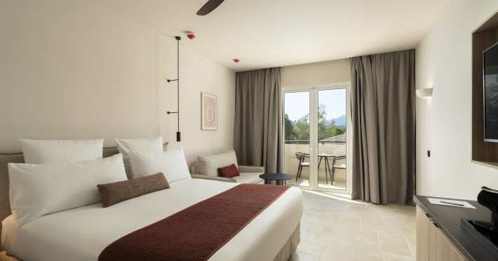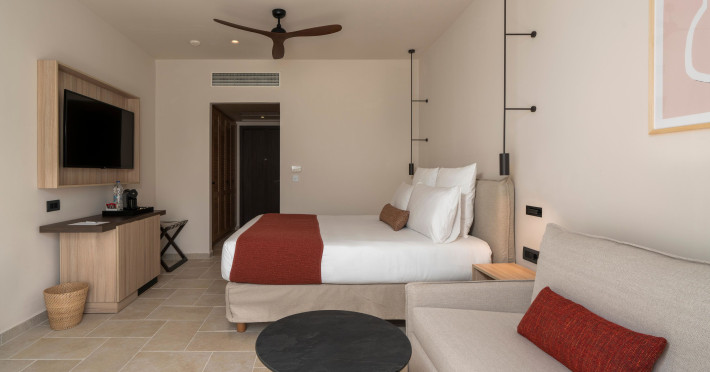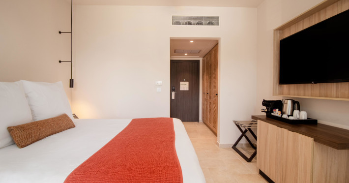 În camere există un aparat de aer condiționat și un ventilator. Clienții vor găsi un cadou de bun venit. În majoritatea spațiilor de cazare clienții beneficiază de o vedere spre grădină de pe balcon sau de pe terasă. Camerele au un pat „King size”. De asemenea, sunt disponibile un seif și un minibar. Echiparea de bază cuprinde de asemenea și un aparat pentru cafea/ceai. Se garantează diverse posibilități de comunicare și divertisment prin echiparea cu un telefon, un televizor cu ecran plat cu canale prin satelit și WiFi (gratuit). Un sortiment de perne promite o stare de bine confortabilă. În baia dotată cu duș, clienților le stau la dispoziție un uscător de păr și halate de baie. Articolele de cosmetică creează un confort deosebit în băi. Se oferă spre rezervare 5 camere adaptate pentru scaun rulant. Hotelul oferă camere de familie și 327 de camere de nefumători.