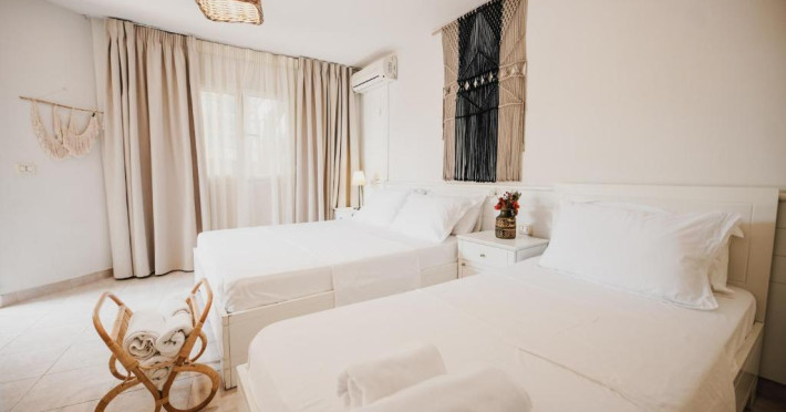 La complex, fiecare cameră include un birou, o baie privată și un dulap. Drymades Bungalows Adults Only Resort oferă unele camere cu vedere la mare. Toate unitățile de cazare sunt dotate cu TV cu ecran plat cu canale prin satelit.