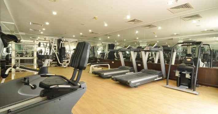 O sală de fitness cu echipamente necesare pentru o gamă variată de exerciții fizice este la dispoziția celor interesați.