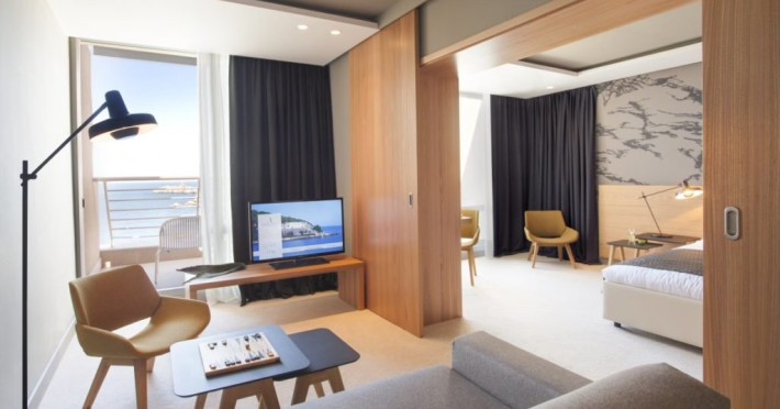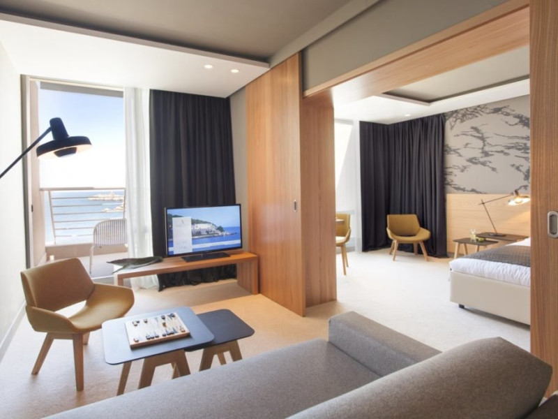 Descriere: Hotelul Dubrovnik Palace de 5 stele se afla pe faleza pitoreasca dintre o padure de pini si apele turcoaz ale peninsulei luxuriante Lapad. La doar 4 kilometri de centrul vechi medieval din Dubrovnik, locatia uimitoare ofera oportunitati fenomenale de fotografiere a insulelor Elafiti din toate directiile. Modernul resort de lux are acces direct la o plaja linistita. In plus, exista un centru de scufundari PADI, un teren de tenis, un traseu de jogging si trasee de mers pe jos prin padurile pitoresti care se ridica pe dealul Petka din spatele hotelului.Localizare: Hotelul Dubrovnik Palace este situat pe peninsula Lapad, la cateva minute de mers cu autobuzul de partea veche a orasului Dubrovnik si la 22 km de aeroportul international.