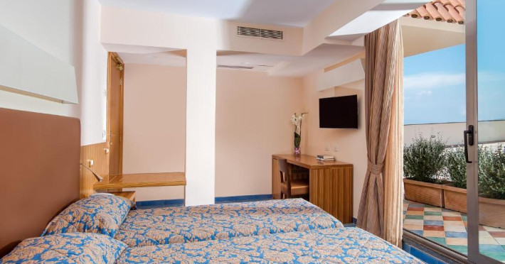 Camerele sunt confortabile si includ balcoane, de unde puteti admira privelisti ale golfului, ale grădinilor hotelului, ale micii piscine si ale terasei la soare.