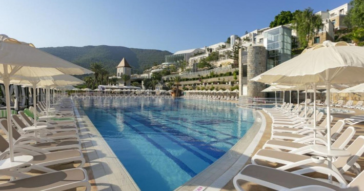 Localizare Hotelul Duja Bodrum este o unitate de 5* localizat in statiunea Torba, dispune de un concept modern si autentic, imbina luxul si eleganta astfel incat turistii cazati sa beneficieze de cele mai bune conditii pentru un sejur de neuitat. Situat intr-o zona verde, dar in imediata apropiere a marii, ofera o priveliste minunata asupra acesteia Facilitati hotel hotelul pune la dispozitia turistilor restaurant principal cu gastronomie international, 4 restaurante a la carte cu specific (turcesc, chinezesc, Italian, pescaresc), baruri (lobby bar, bar la piscina, snack bar, vitamin), piscina principala exterioara, parc acvatic, piscina pentru copii, piscina interioara, Jacuzzi, centru SPA, 2 terenuri de tenis, miniclub, tenis de masa, billiard, internet gratuit in spatiile publice, magazine, minigolf. Hotelul prevede 5 camere special amenajate pentru persoanele cu disabilitati, Serviciu de transfer, magazin convenabil (la fața locului), salon comun / zonă TV, transfer de la aeroport (taxă suplimentară), serviciu de transfer (taxă suplimentară), zonă pentru fumători, aer condiționat, magazine (la fața locului), închirieri auto, magazin de cadouri, seif , Ascensor, facilități cameră VIP, Camere pentru familii, Salon de coafură / frumusețe, Facilități pentru persoane cu handicap, Camere pentru nefumători, Room service Facilitati camera televizor, baie cu dus, mini bar, facilitati pentru persoanele cu dizabilitati, telefon, balconInfo