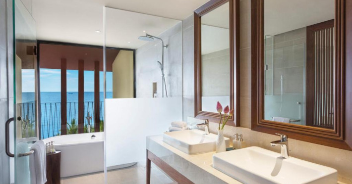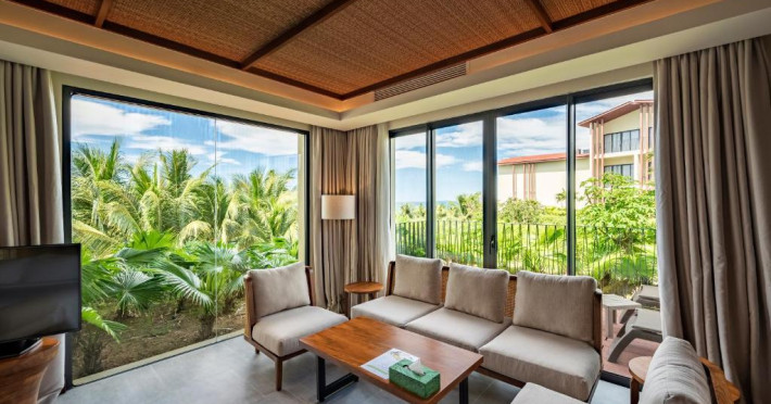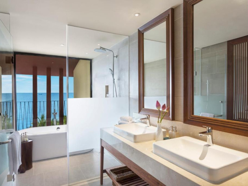 Locație pe malul mării: Dusit Princess Moonrise Beach Resort din Phu Quoc oferă acces direct la malul mării, cu o zonă de plajă privată. Oaspeții se bucură de vederi uimitoare la mare și de o piscină cu vedere.
