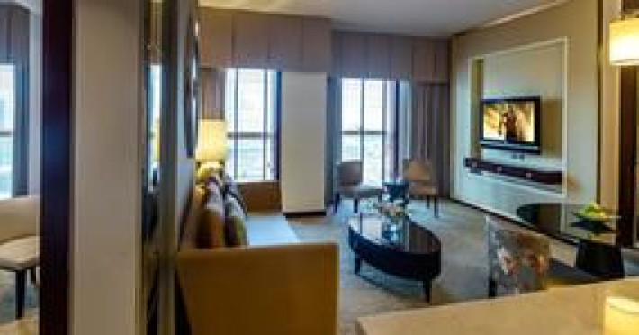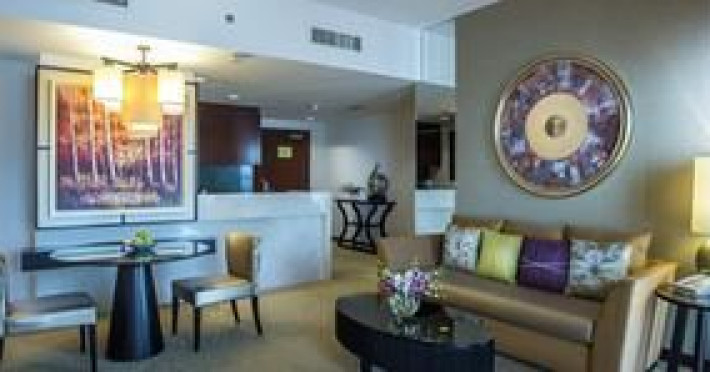 Near Dubai Ice Rink. With a stay at Dusit Thani Dubai, youll be centrally located in Dubai, a 4-minute drive from Dubai World Trade Centre and 5 minutes from Dubai Mall. This 5-star hotel is 3.1 mi (5 km) from Burj Khalifa and 11.3 mi (18.2 km) from Mall of the Emirates. Stay in one of 321 guestrooms featuring LCD televisions. Complimentary wireless Internet access keeps you connected, and satellite programming is available for your entertainment. Bathrooms feature separate bathtubs and showers, complimentary toiletries, and hair dryers. Conveniences include phones, as well as safes and desks. Enjoy international cuisine at 24th Street, one of the hotels 4 restaurants, or stay in and take advantage of the 24-hour room service. Buffet breakfasts are available daily from 7:00 AM to 10:30 AM for a fee. Relax at the full-service spa, where you can enjoy massages, body treatments, and facials. You can take advantage of recreational amenities such as a health club, an outdoor pool, and a sauna. Additional features at this hotel include complimentary wireless Internet access, concierge services, and gift shops/newsstands. Guests can get to nearby shops on the complimentary shuttle.Datorita dinamicitatii domeniului disponibilitatea ofertelor se modifica de la un moment la altul. De aceea ofertele sunt valabile in limita locurilor disponibile. Agentia nu este responsabila pentru eventualele neconcordante care pot aparea intre informatiile privind tarifele si alte detalii din site si informatiile primite in agentie. In aceste cazuri vor avea prioritate, intotdeauna, informatiile primite in agentie.