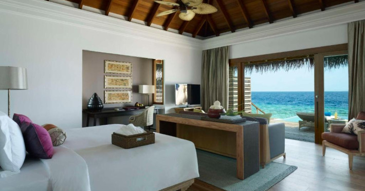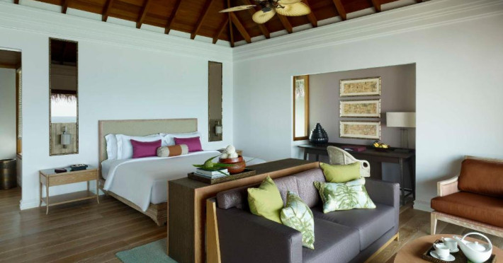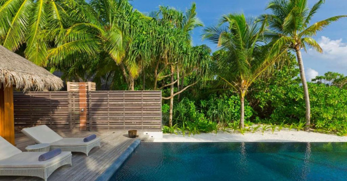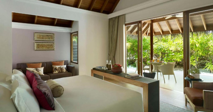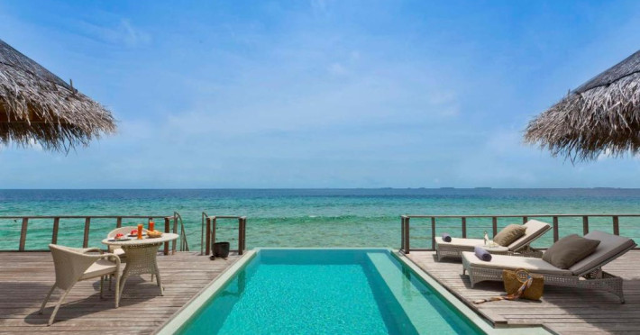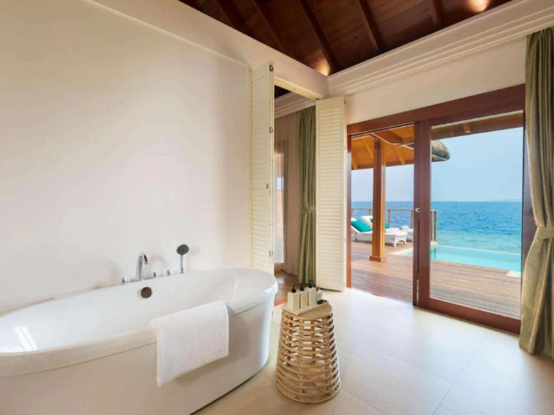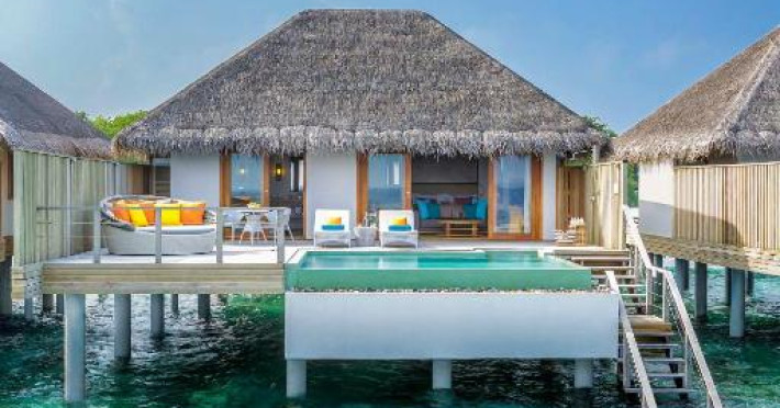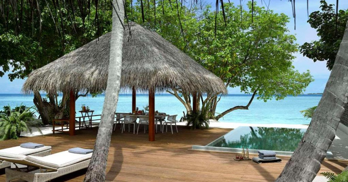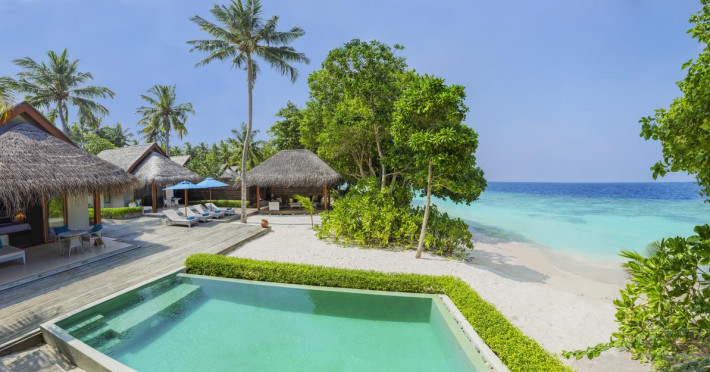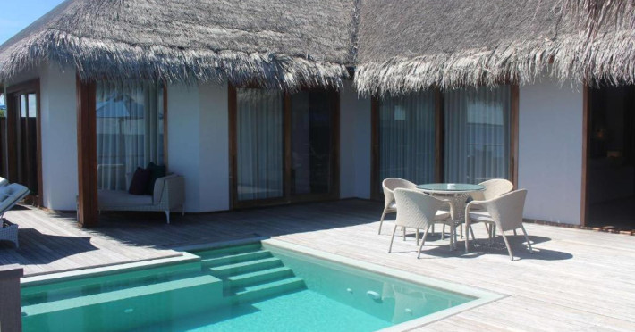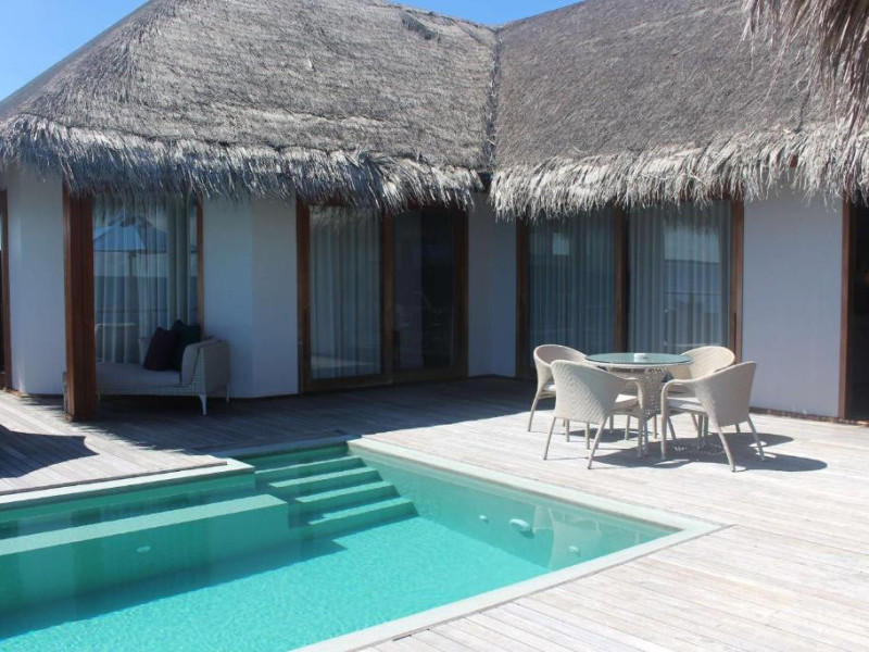Dusit Thani Maldives oferă 94 de vile și reședințe și este un complex de lux, situat in Atolul Baa, prima și singura rezervație a biosferei din Maldive inclusă in Patrimoniul Mondial UNESCO. Complexul pune la dispoziție una dintre cele mai mari piscine infinite din Maldive, inconjurată de frumoase recife de corali și lagună superbă. Oaspeții beneficiază de plajă privată, centru spa construit in coroana copacilor, WiFi gratuit in camere și recif care inconjoară insula. Personalul vorbește limbile engleză, rusă, arabă, japoneză, thailandeză și chineză mandarină.