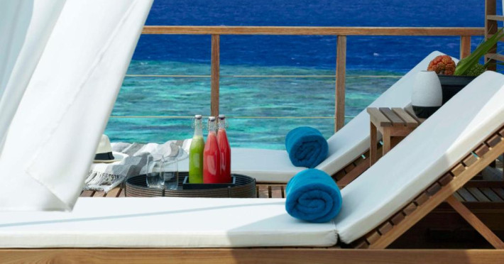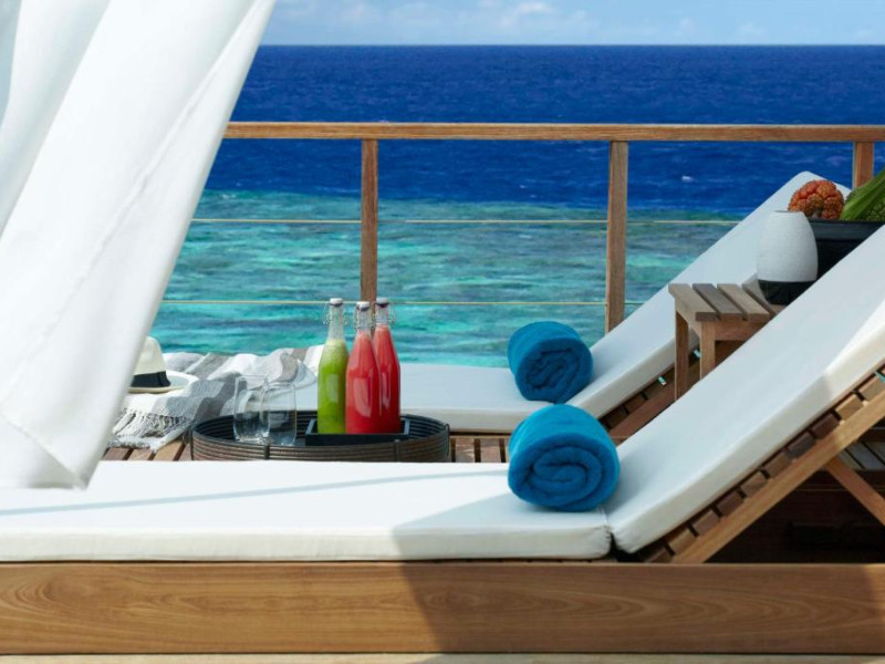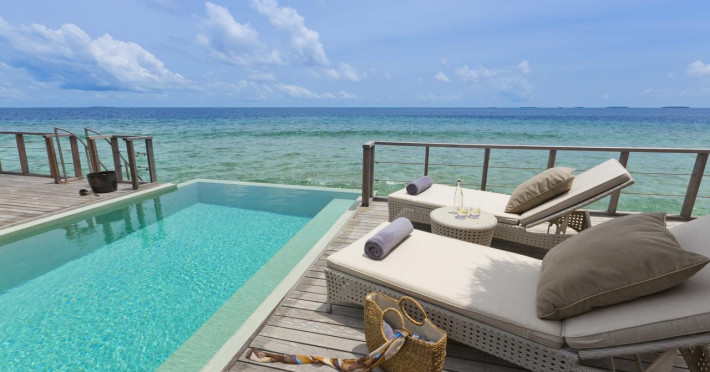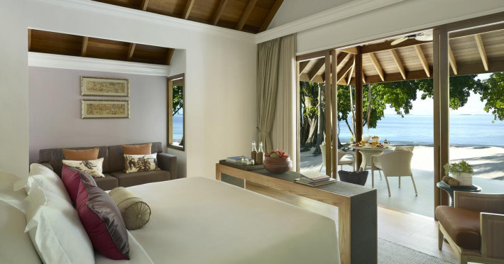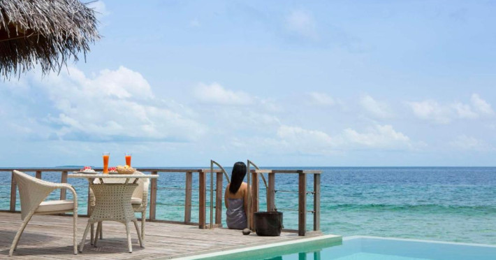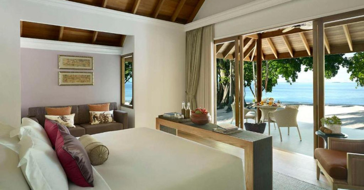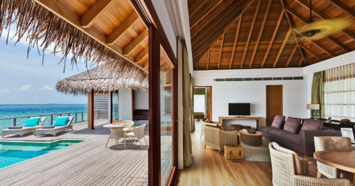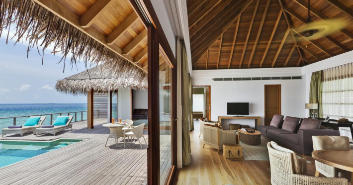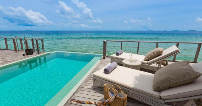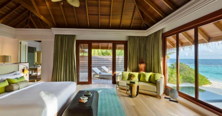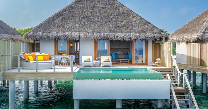 Dusit Thani Maldives oferă 94 de vile și reședințe și este un complex de lux, situat in Atolul Baa, prima și singura rezervație a biosferei din Maldive inclusă in Patrimoniul Mondial UNESCO. Complexul pune la dispoziție una dintre cele mai mari piscine infinite din Maldive, inconjurată de frumoase recife de corali și lagună superbă. Oaspeții beneficiază de plajă privată, centru spa construit in coroana copacilor, WiFi gratuit in camere și recif care inconjoară insula. Personalul vorbește limbile engleză, rusă, arabă, japoneză, thailandeză și chineză mandarină.