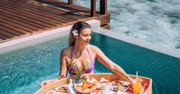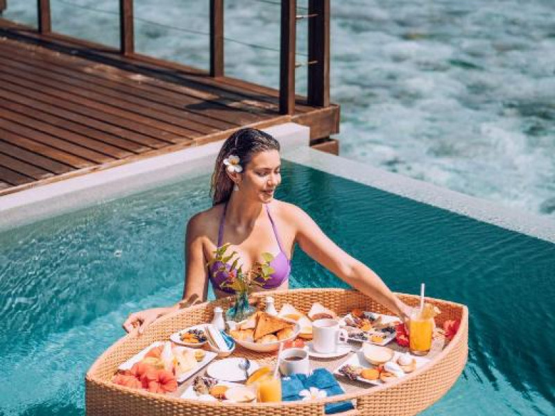 The Market oferă produse tartinabile internaționale, iar restaurantul pe apă Benjarong servește mancăruri thailandeze. La The Sea Grill puteți să savurați fructe de mare la grătar și fripturi pe plajă. Barul Sand și barul Sala oferă băuturi și gustări. Opțiunile de mic dejun copios includ și delicii chinezești.