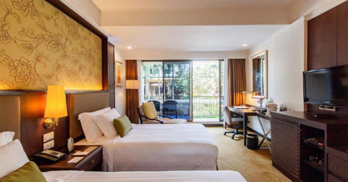 Toate camerele hotelului Dusit Thani au vedere la grădină sau la mare. Camerele au decor thailandez moderne și sunt dotate cu TV prin cablu și WiFi gratuit.