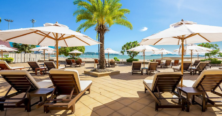 - Sezlonguri, umbrele si prosoape disponibile pe terasa pentru plaja
