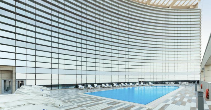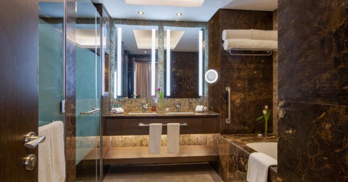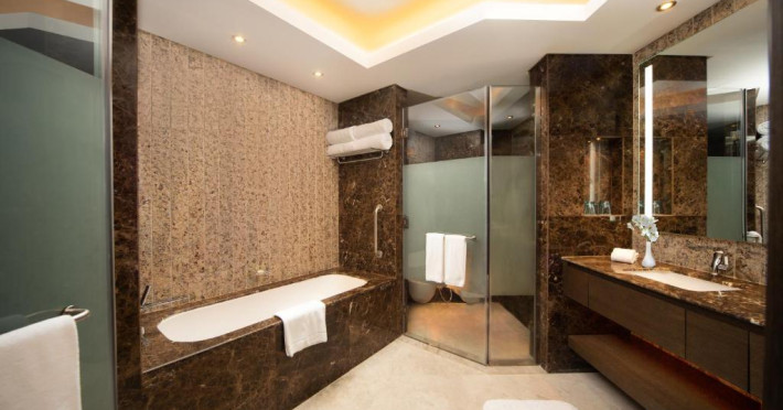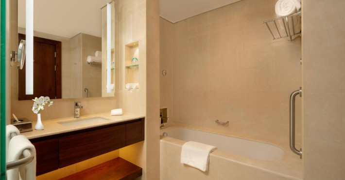 Zona de wellness de la dusitD2 Salwa Doha este formată dintr-o cadă cu hidromasaj și o saună.