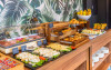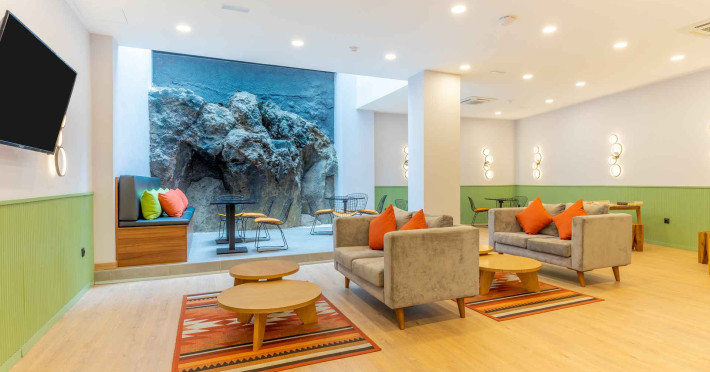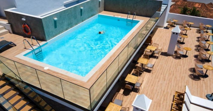 In the vicinity of the stone beach lies the hotel Dwo Nopal. Directly next to the beach there is a promenade where you can take leisurely walks. The air-conditioned hotel is equipped with a 24h reception (check-in is possible around the clock), a lobby, Wi-Fi, a lift, a first aid kit as well as a TV lounge with satellite TV. In the outdoor area of the property you will find a pool (open , where you can rent pool towels for a fee and sun umbrellas are available for free. Furthermore, outside you can find a sun terrace. For very young guests, kid`s chairs can be provided. You can store your luggage in the hotel's storage room. Guests at the accommodation can get a wake-up call from the hotel personnel. If you want to explore the holiday region, you can use the car and motorbike rental service close to the hotel (extra fee). In addition, the hotel sells tickets for excursions. Catering As catering services the hotel offers breakfast only. Breakfast is offered continental or from the buffet. For the meals, there are a restaurant (calorie-reduced and gluten-free dishes) and a bar as well as the cafeteria. Sports & Leisure In terms of adult entertainment, shows are organized in the evening. Additional information The 5-storey hotel, last renovated in 2019, has a total of 64 rooms.