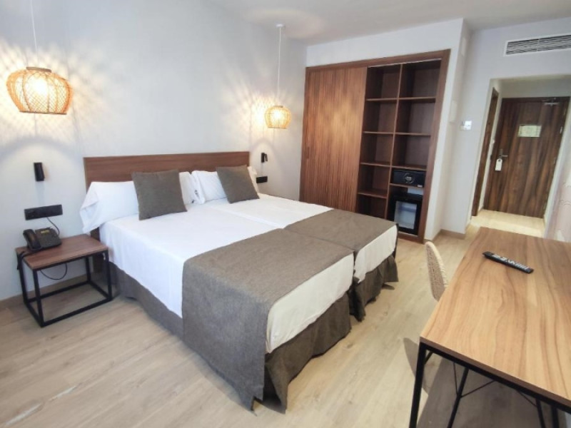 In the vicinity of the stone beach lies the hotel Dwo Nopal. Directly next to the beach there is a promenade where you can take leisurely walks. The air-conditioned hotel is equipped with a 24h reception (check-in is possible around the clock), a lobby, Wi-Fi, a lift, a first aid kit as well as a TV lounge with satellite TV. In the outdoor area of the property you will find a pool (open , where you can rent pool towels for a fee and sun umbrellas are available for free. Furthermore, outside you can find a sun terrace. For very young guests, kid`s chairs can be provided. You can store your luggage in the hotel's storage room. Guests at the accommodation can get a wake-up call from the hotel personnel. If you want to explore the holiday region, you can use the car and motorbike rental service close to the hotel (extra fee). In addition, the hotel sells tickets for excursions. Catering As catering services the hotel offers breakfast only. Breakfast is offered continental or from the buffet. For the meals, there are a restaurant (calorie-reduced and gluten-free dishes) and a bar as well as the cafeteria. Sports & Leisure In terms of adult entertainment, shows are organized in the evening. Additional information The 5-storey hotel, last renovated in 2019, has a total of 64 rooms.In the vicinity of the stone beach lies the hotel Dwo Nopal. Directly next to the beach there is a promenade where you can take leisurely walks. The air-conditioned hotel is equipped with a 24h reception (check-in is possible around the clock), a lobby, Wi-Fi, a lift, a first aid kit as well as a TV lounge with satellite TV. In the outdoor area of the property you will find a pool (open , where you can rent pool towels for a fee and sun umbrellas are available for free. Furthermore, outside you can find a sun terrace. For very young guests, kid`s chairs can be provided. You can store your luggage in the hotel's storage room. Guests at the accommodation can get a wake-up call from the hotel personnel. If you want to explore the holiday region, you can use the car and motorbike rental service close to the hotel (extra fee). In addition, the hotel sells tickets for excursions. Catering As catering services the hotel offers breakfast only. Breakfast is offered continental or from the buffet. For the meals, there are a restaurant (calorie-reduced and gluten-free dishes) and a bar as well as the cafeteria. Sports & Leisure In terms of adult entertainment, shows are organized in the evening. Additional information The 5-storey hotel, last renovated in 2019, has a total of 64 rooms.