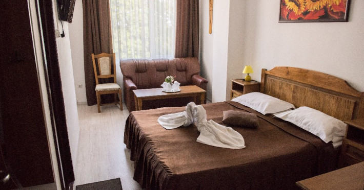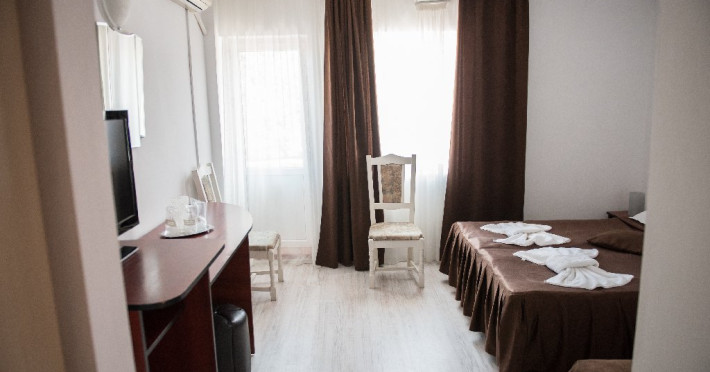 Camerele duble au o suprafata de 18 mp. Pot avea pat matrimonial sau 2 paturi twin.