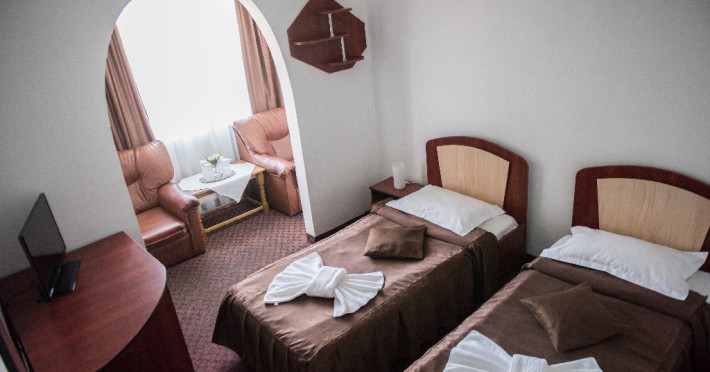 Suitele au 27 mp si dispun de open space cu un pat matrimonial si doua paturi twin.