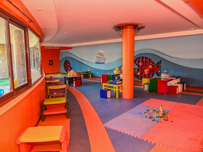 Hotelul dispune de aer conditionat, receptie 24H, lobby bar, WiFi, supermarket si alte magazine, gradina, piscina exterioara, piscina copii, piscina interioara incalzita, restaurant bufet, bar la piscina, sala fitness, fotbal, baschet, cursuri de aerobic, yoga si zumba, volei, centru spa, miniclub, spectacole, muzica live.