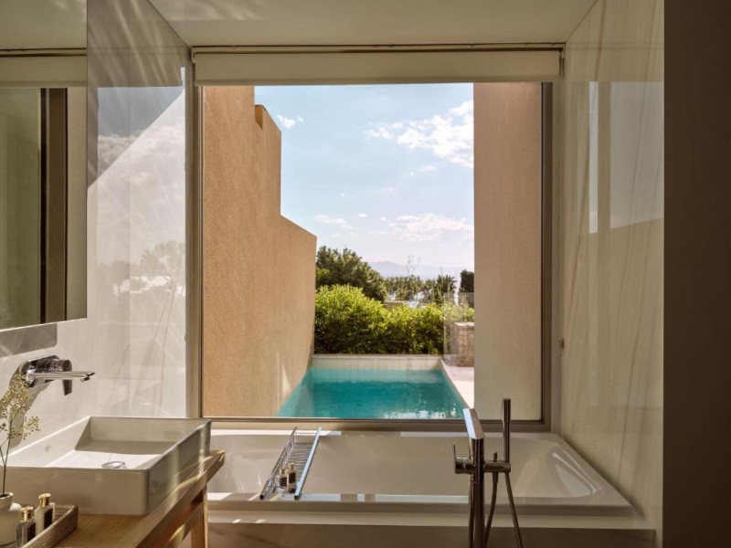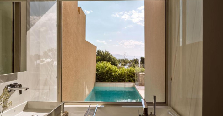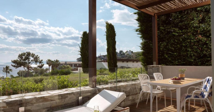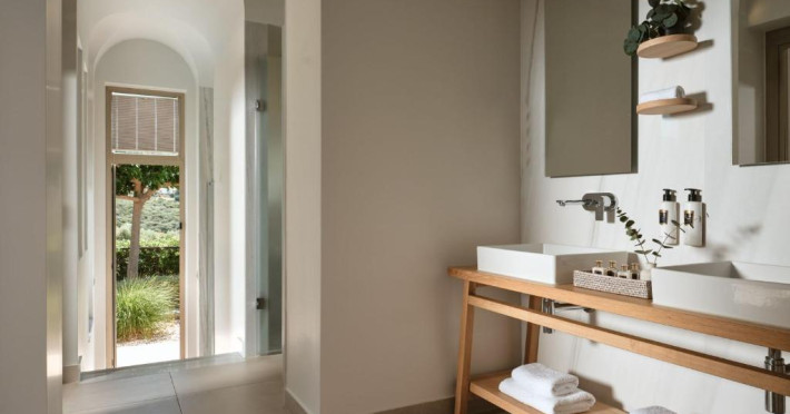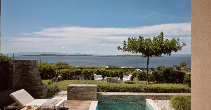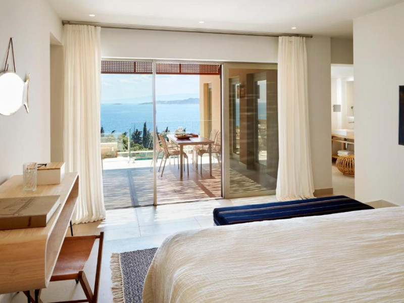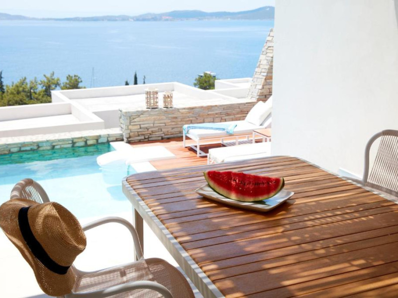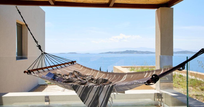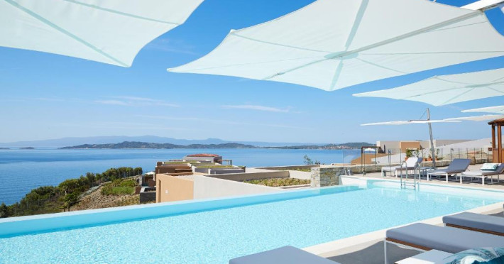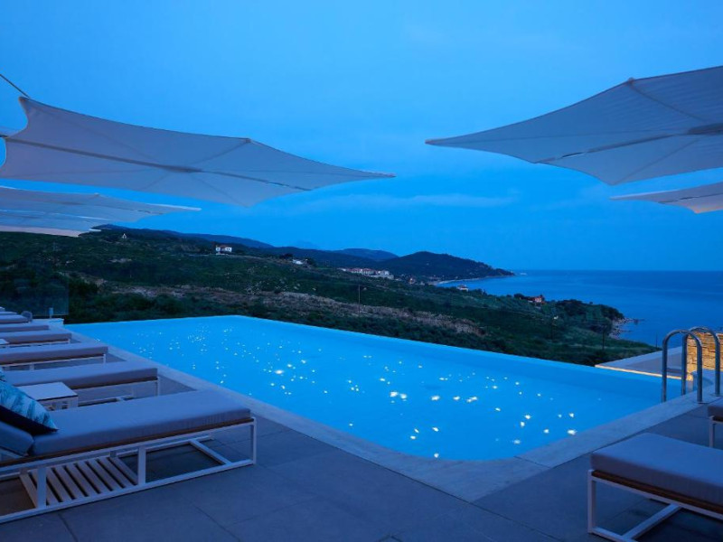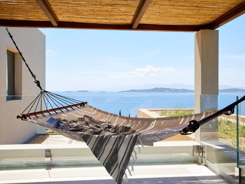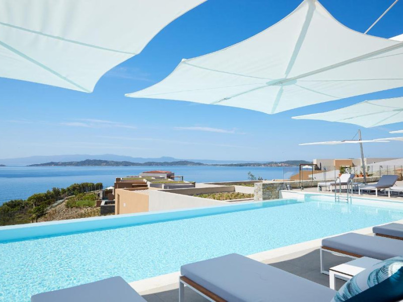 Situat pe un deal frumos, cu vedere impresionantă la golf și la Muntele Athos, Eagles Villas - Small Luxury Hotels of The World oferă decor in nuanțe pastel și relaxante, care va ajuta oaspeții să se destindă. Baia din fiecare unitate este prevăzută cu o cadă și articole de toaletă gratuite.