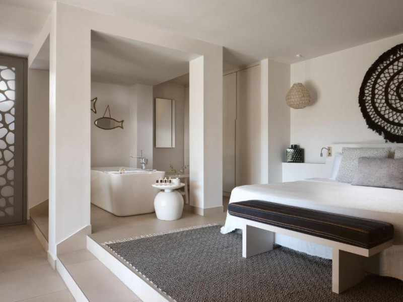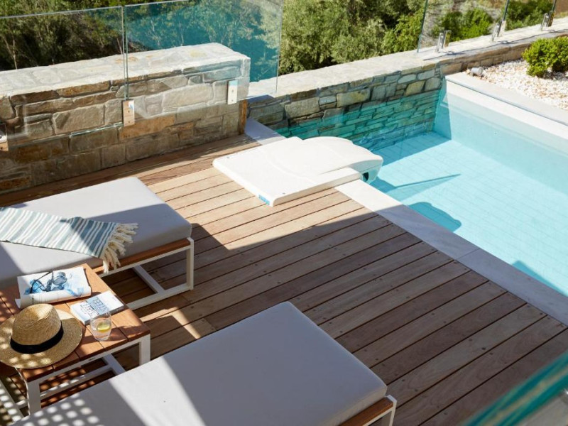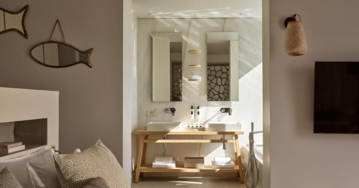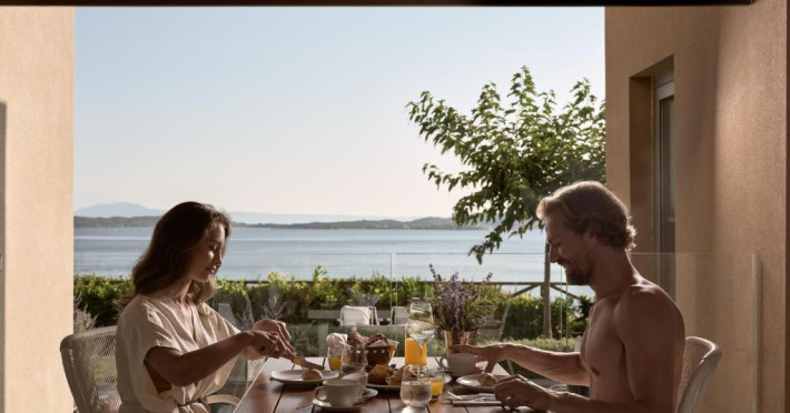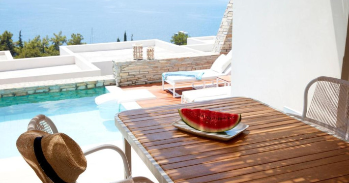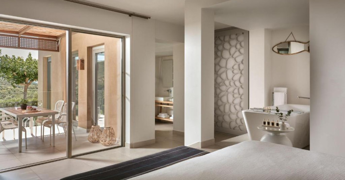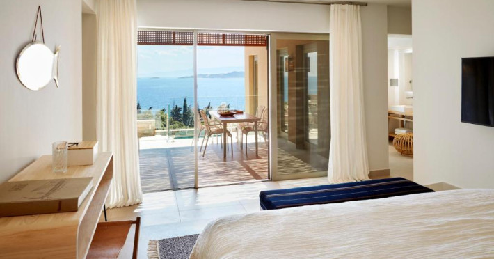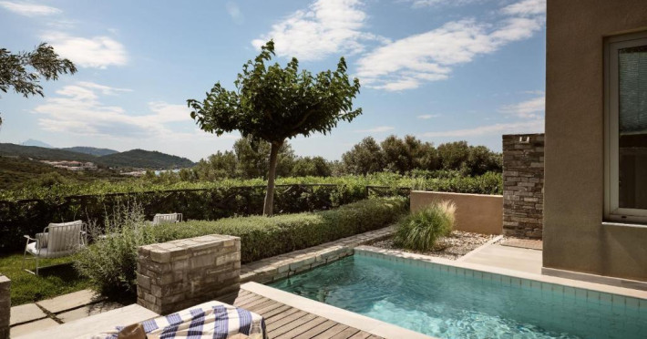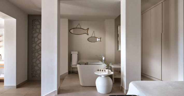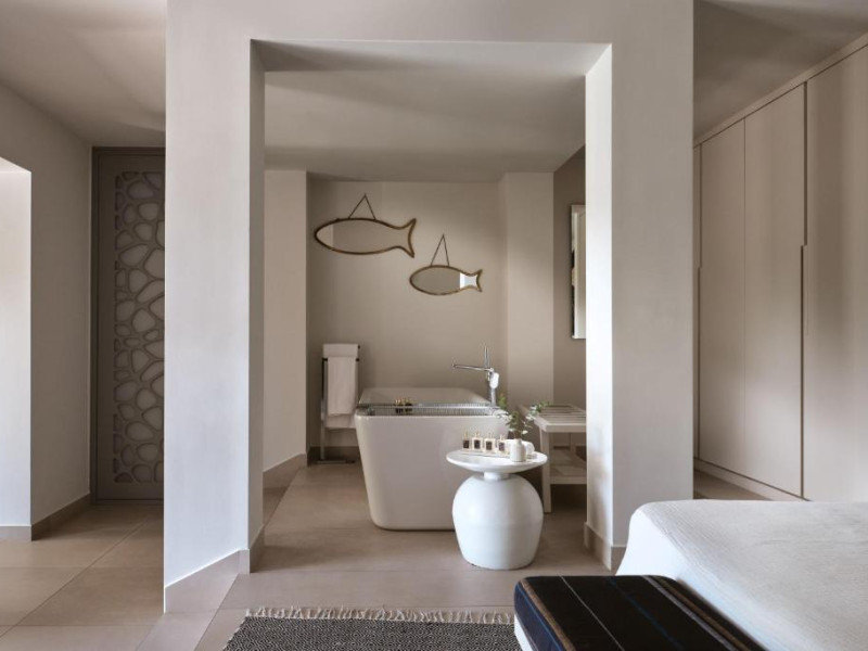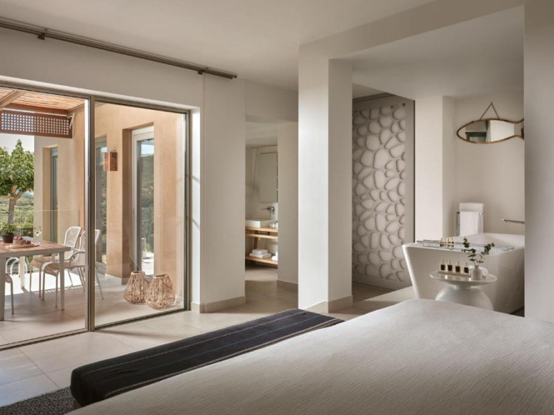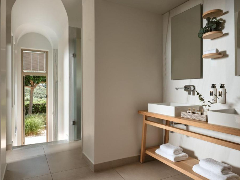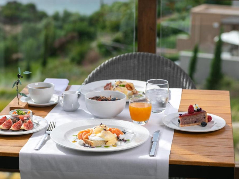 Situat pe un deal frumos, cu vedere impresionantă la golf și la Muntele Athos, Eagles Villas - Small Luxury Hotels of The World oferă decor in nuanțe pastel și relaxante, care va ajuta oaspeții să se destindă. Baia din fiecare unitate este prevăzută cu o cadă și articole de toaletă gratuite.