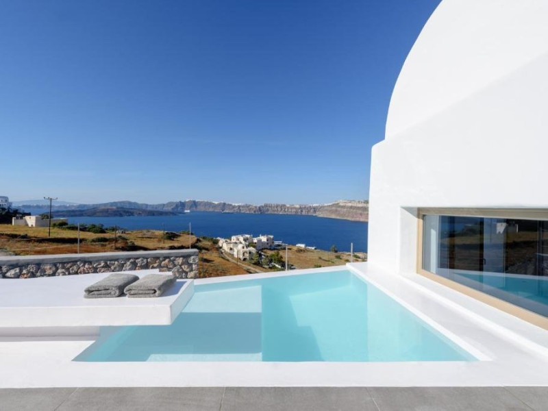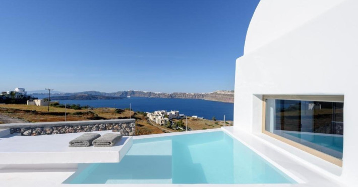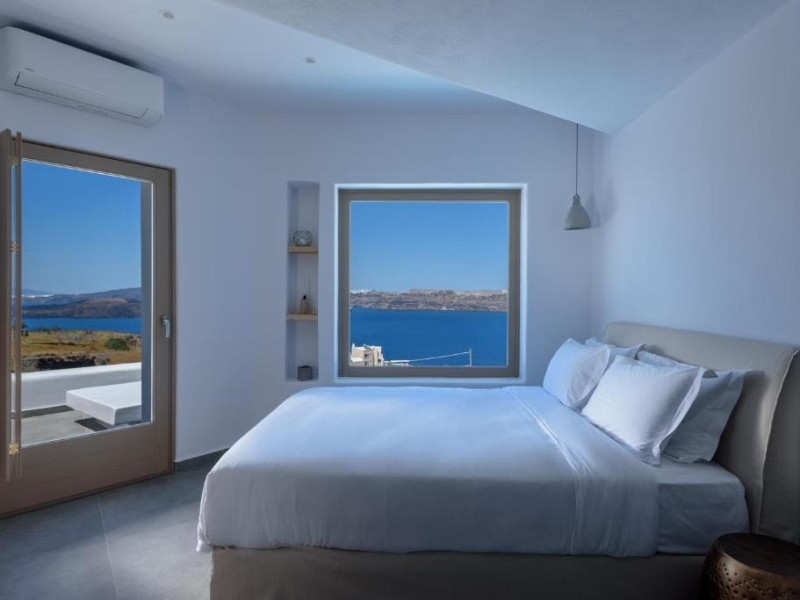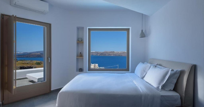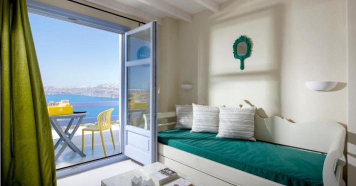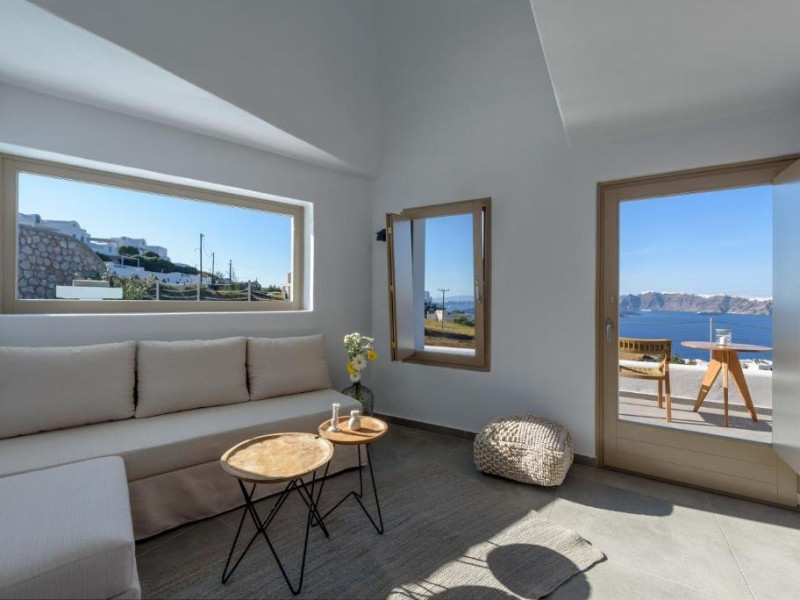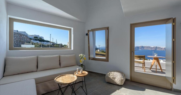 Hotel Earino are suite spatioase, mobilate modern, extinse pe doua etaje, avand dormitor, camera de zi, sufragerie, bucatarie, balcon cu vedere spre caldera sau Marea Egee, baie cu dus, uscator de par, articole de toaleta, halat si papuci de baie. Suitele sunt dotate cu aer conditionat, TV satelit, Wi-Fi. Unele unitati au piscina privata.