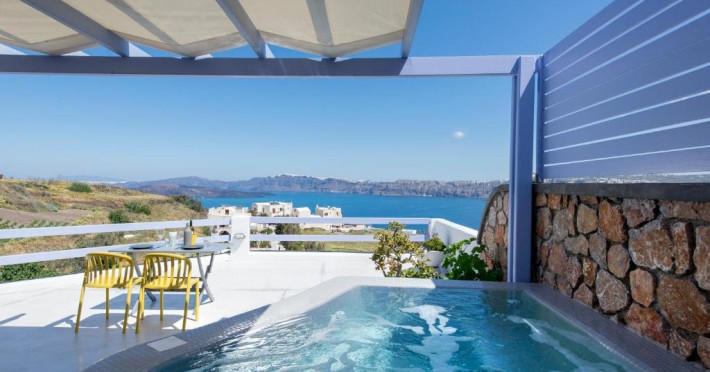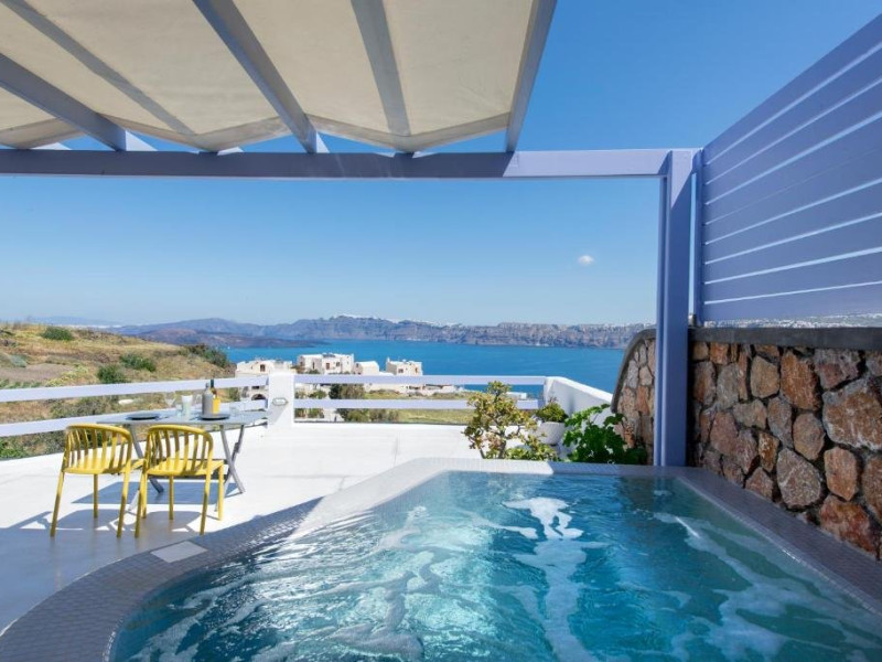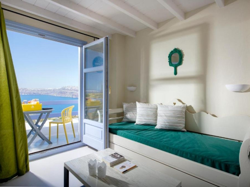 Descriere HOTEL EARINO:Earino este un complex nou, construit in concordanta cu arhitectura locala dar cu o tenta romantica. Complexul consta din doua cladiri amplasate intr-o ambianta linistita cu vedere superba spre caldera.