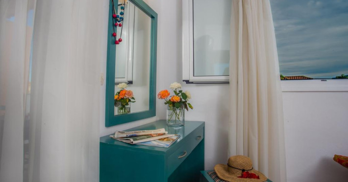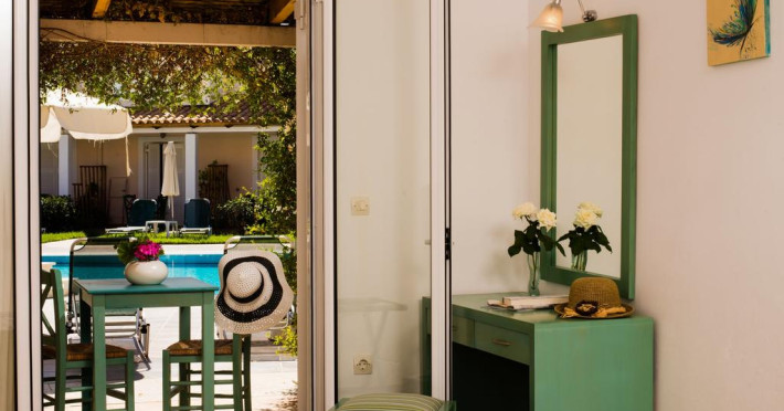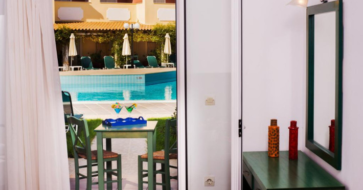 Sunt disponibile 71 camere. În camere există baie cu foehn și articole de toaletă gratuite. Camerele confortabile de la Ecoresort Zefyros au pardoseală de gresie/ marmură, aer condiționat, Tv cu canale prin satelit și seif. Unele camere au balcon cu vedere la grădină sau la piscină. Oaspeții au la dispoziție serviciul de room service pentru a servi masa sau diverse băuturi. Curățenia in cameră se face zilnic. Fiecare unitate de cazare are frigider. Proprietatea oferă camere pentru familie cu o suprafață mai mare și un număr mai mare de paturi față de cele standard.