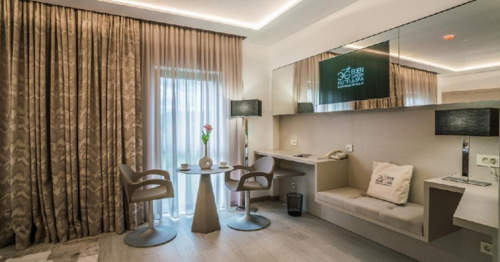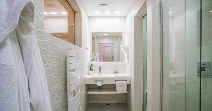Camera junior suite 4* superior cu balcon - 8 camere, 42 mp, etaj 2,3. Camerele sunt echipate cu dressing, baie cu cada, WC, bideu, minibar, cafetiera, TV Led 140 cm, televiziune digitala 200 canale, internet de mare viteza, control acces, climatizare si iluminat inteligent. Camerele sunt dotate cu 2 paturi 160x200 cm, saltea ergonomica 30 cm, perne antialergice, lenjerie premium, halate de baie, pardoseala parchet ecologic, balcon S-E 9 mp cu vedere panoramica spre Masivul Rarau.