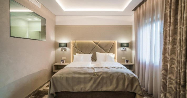 Camera dubla/twin 4* cu pat suplimentar - 5 camere, 30 mp, etaj 4 mansardate. Camerele sunt echipate cu baie cu dus, WC, minibar, cafetiera, TV Led 80 cm, televiziune digitala 200 canale, internet de mare viteza, control acces, climatizare si iluminat inteligent. Camerele sunt dotate cu pat 180x200 cm (2 paturi 90x200 cm) si canapea extensibila 130x190 cm, saltea ergonomica 30 cm, perne antialergice, lenjerie premium, halate de baie, pardoseala parchet ecologic.