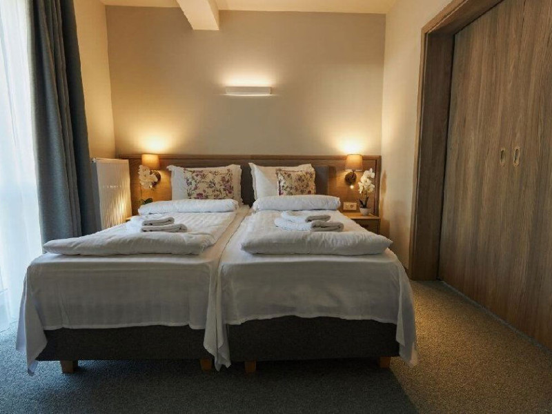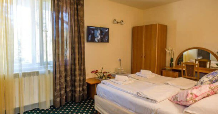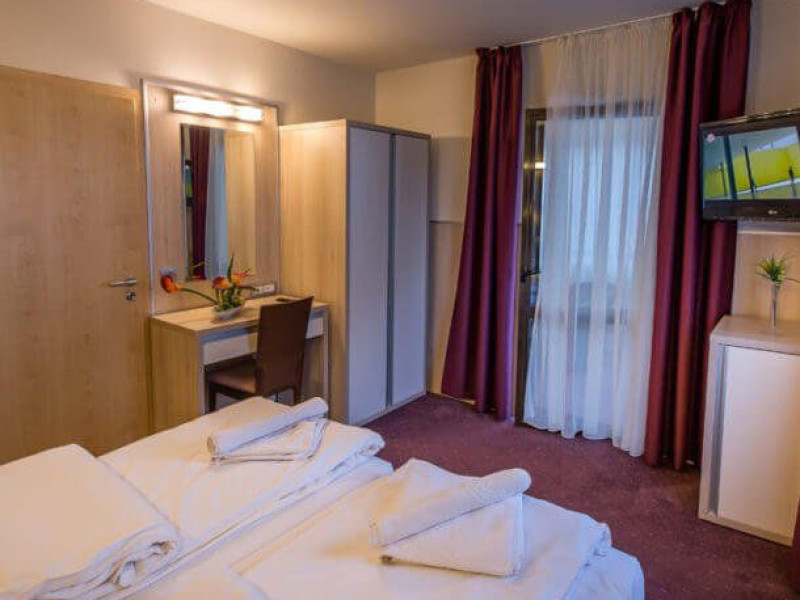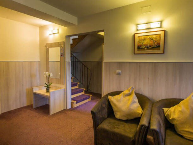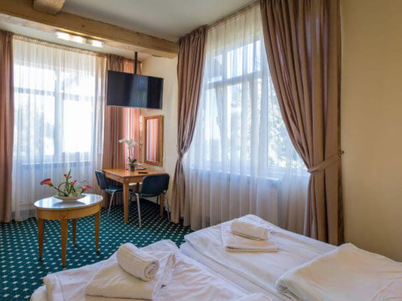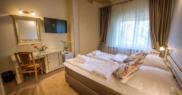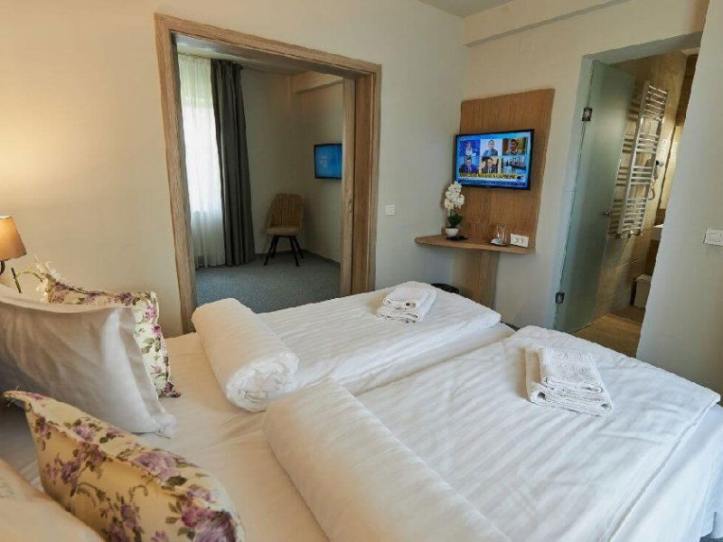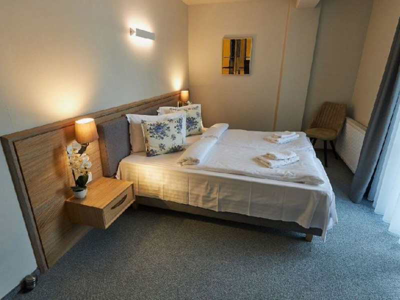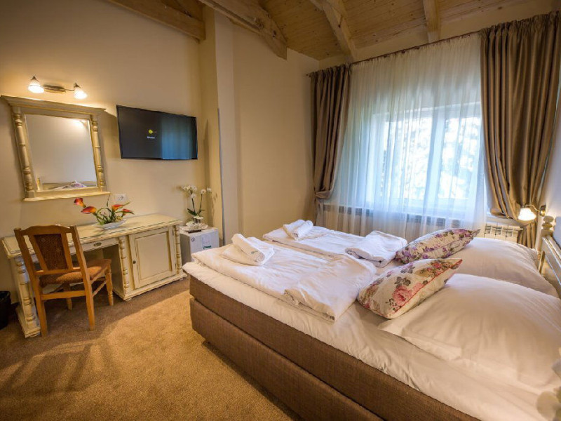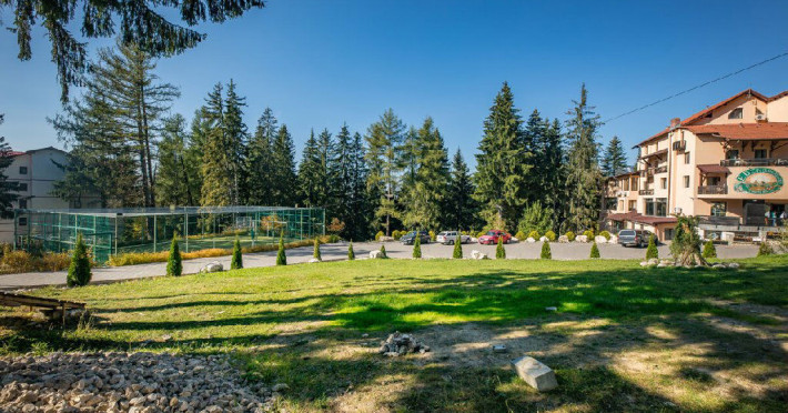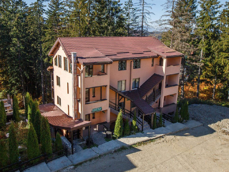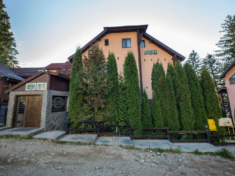 Situat in zona Cioplea, intr-o zona deosebit de linistita de la liziera padurii, Complexul Hotelier Eden pune la dispozitia oaspetilor sai toate dotarile unei unitati de cazare de 3 stele Capacitatea totala a complexului este de 32 de camere (single, duble si apartamente), in cazul grupurilor mari aceasta putand fi suplimentata pana la 150 de camere.Complexul isi asteapta turistii cu camere modern decorate, ce dispun de TV LCD cu diagonala mare, minibar, seif, uscator de par, telefon, internet wireless gratuit si baie proprie. Complexul Eden - Belvedere pune la dispozitie: - 200 de dtrcturi de cazare; - 12 sali de conferinte; - Fun Park; - teren de sport multifunctional cu nocturna (fotbal, tenis de picior, baschet, handbal); - loc de joaca spatios pentru copii. Eden Grand Resort include cladirea principala Eden ce reuneste Restaurantele, salile de conferinta, plus cladirea Eden 1, cladirea Eden 2 si cladirile Eden 3 si 4 sunt situate la 250 metri distanta fata de cladirea principala. Cu 120 de locuri de cazare unitatea isi asteapta oaspetii tot timpul anului. Cele peste 6 tipuri de unitati de cazare sunt atent decorate si aranjate, astfel incat sa raspunda tuturor dorintelor de buget si confort. Oferta hoteliera este destinata atat unui calator de tranzit, cat si unui turist care doreste o experienta de relaxare completa. Cladirea Eden principala dispune de: - 7 camere duble Eden; - 2 apartamente standard; - 2 apartamente cu hidromasaj; - 2 apartamente deluxe cu semineu;- 2 duplex-uri. Eden 1 dispune de 2 garsoniere. Eden 2 dispune de 1 suita (4 persoane), 1 garsoniera si o suita. Eden 3 dispune de 8 camere duble Forest si 4 camere duble superioare Forest. Eden 4 dispune de 7 camere duble Junior. Eden 5 dispune de 6 camere duble economy cu balcon si 2 garsoniere. In restaurantul, terasa si barul complexului, turistii pot savura in conditii incantatoare o gama foarte variata de preparate si bauturi, de la bautura preferata pana la cele mai bune preparate culinare romanesti sau cele mai gustoase preparate vanatoresti (caprioara, mistret, urs, cerb, iepure, fazan si prepelita). Elegantul restaurant are o capacitate de 150 de locuri, terasa - restaurant rustic - este acoperita, are 250 de locuri, iar barul dispune de internet cafe, cu 30 de locuri. Restaurantul dispune si de un separeu intim cu o capacitate de pana la 50 de locuri. NOU! Animalele de companie pot fi cazate la EDEN PET HOTEL in functie de disponibilitate, la tarifele din momentul rezervarii! Masaj (cu programare) Internet cafe cu acces gratuit nonstop Restaurant Atractii in zona: - Trasee turistice montane in imprejurimi (Canionul Sapte Scari, Cascada Tamina, Pestera de Gheata, Cheile Rasnoavei), -Manastirea Sfantul Nicolae, - Biserica ortodoxa Sfintii Imparati Constantin si Elena, - Capela romano-catolica Timisul de Jos, - Manastirea romano-catolica Timisul de Jos, - Monumentul Eroilor - Valea Rasnoavei, - Monumentul Mihail Saulescu, - Monumentul Eroilor din gara PredealDatorita dinamicitatii domeniului disponibilitatea ofertelor se modifica de la un moment la altul. De aceea ofertele sunt valabile in limita locurilor disponibile. Agentia nu este responsabila pentru eventualele neconcordante care pot aparea intre informatiile privind tarifele si alte detalii din site si informatiile primite in agentie. In aceste cazuri vor avea prioritate, intotdeauna, informatiile primite in agentie.