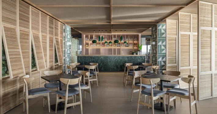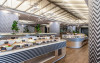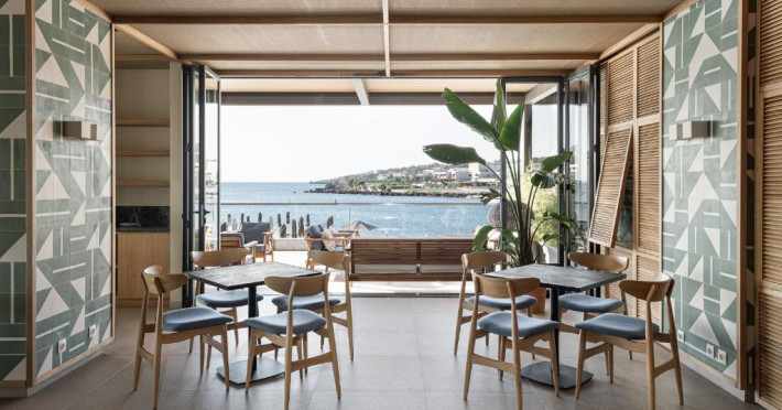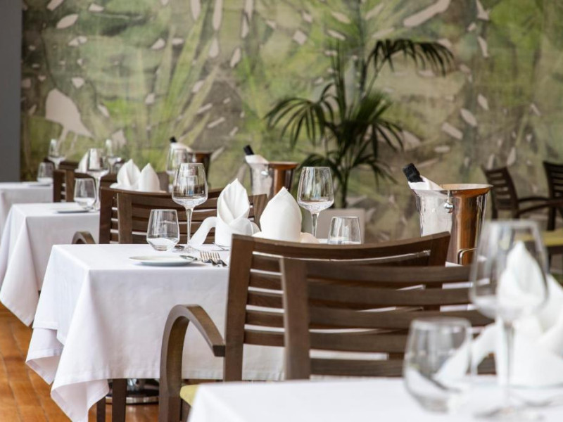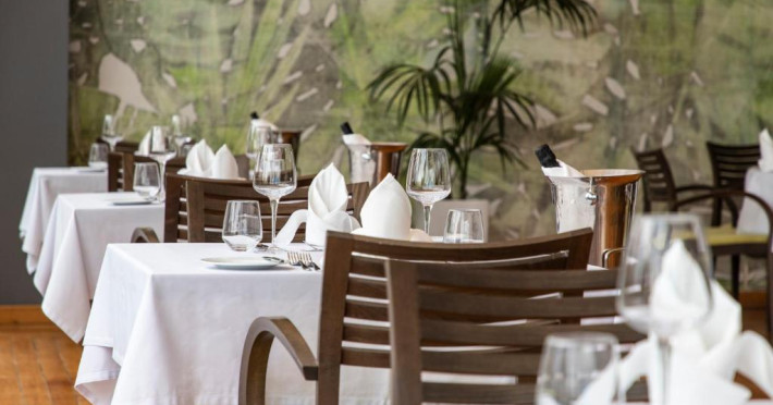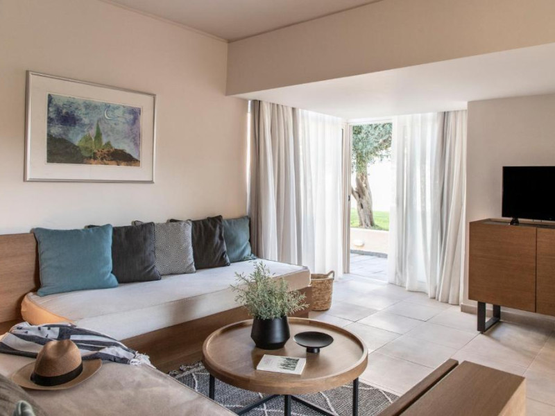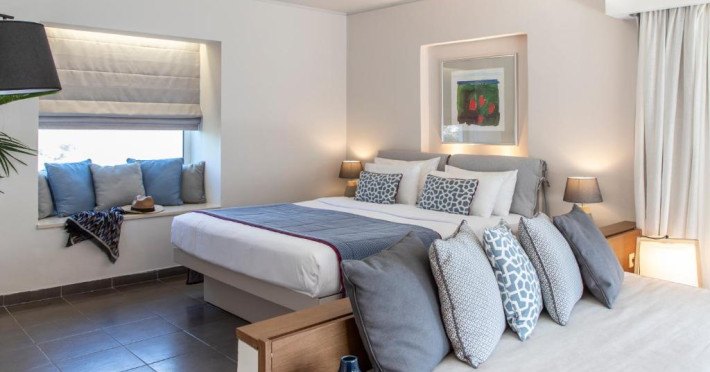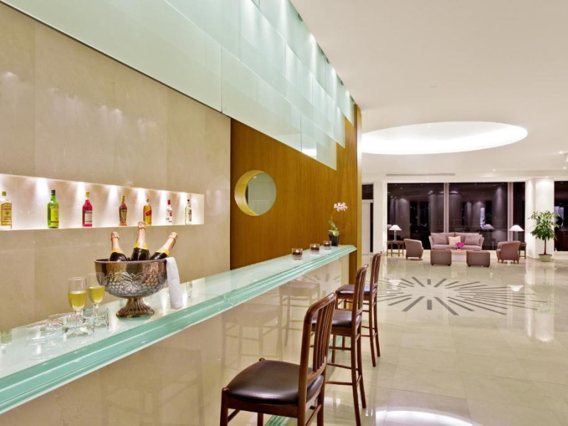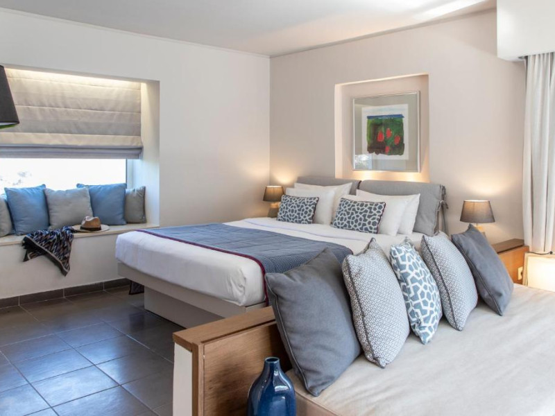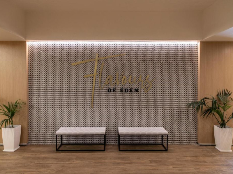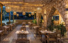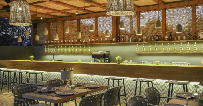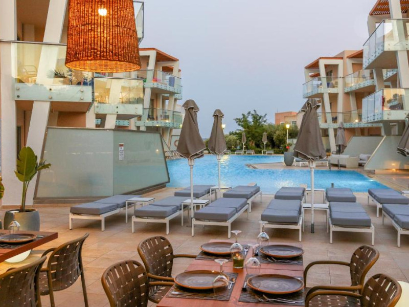 Oaspeții pot savura preparate din bucătăria internațională la restaurantul à la carte cu vedere la mare sau mancăruri grecești la taverna Dikti de pe malul mării. Hotelul pune la dispoziție in total 8 restaurante à la carte, pentru a satisface toate gusturile. Oaspeții trebuie să respecte un cod vestimentar la cină. Băuturile sunt servite la barul elegant cu șampanie și la diversele baruri de la piscină.