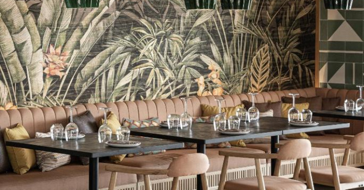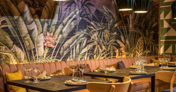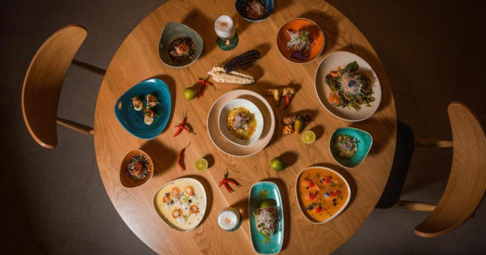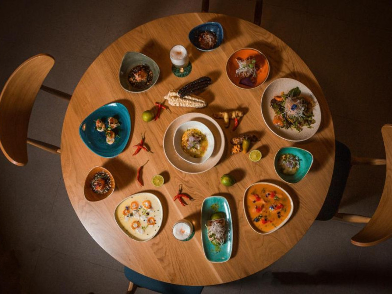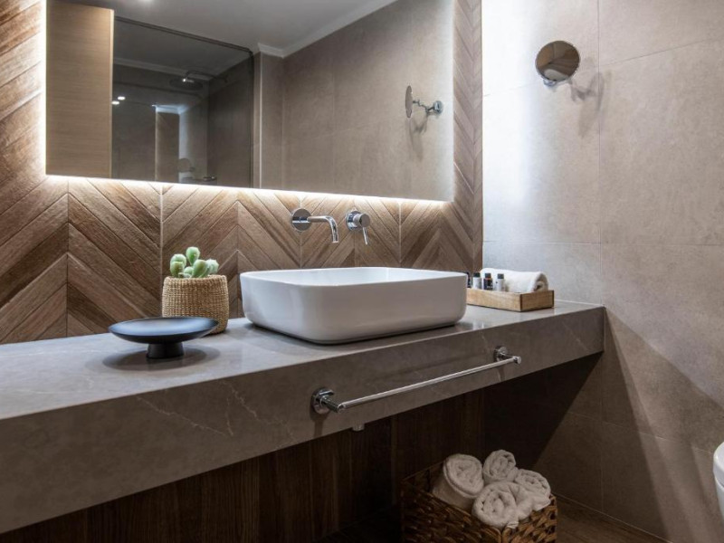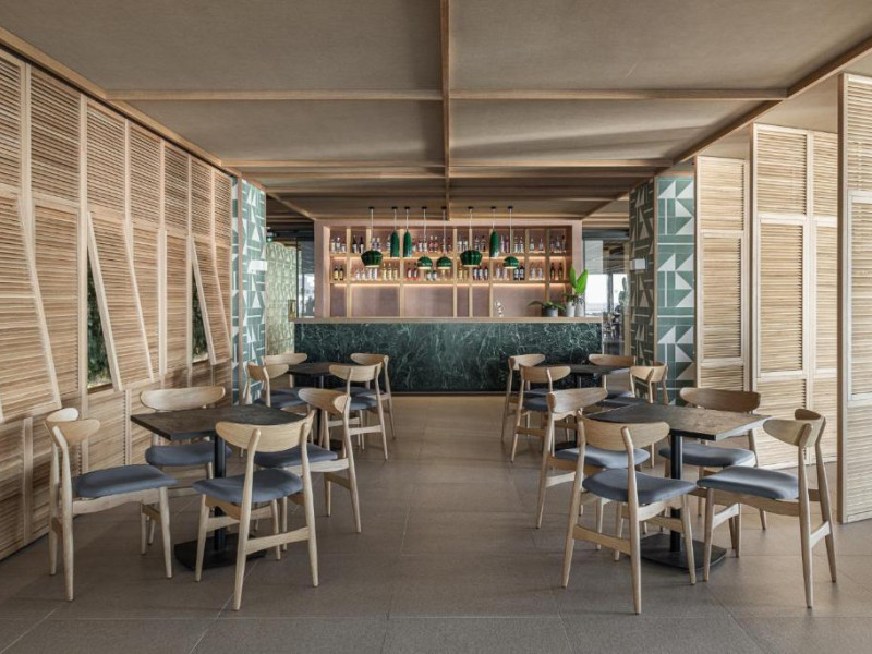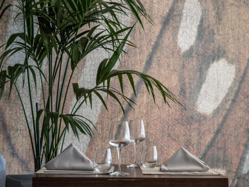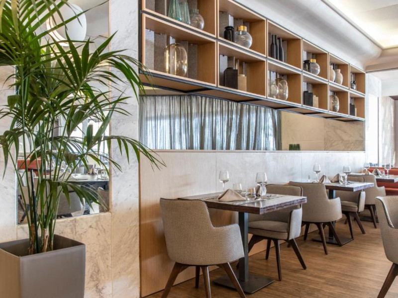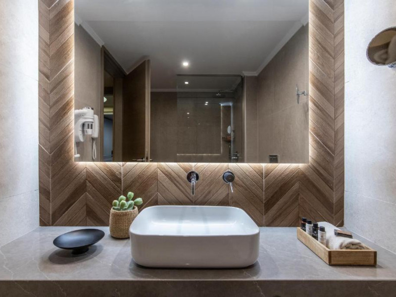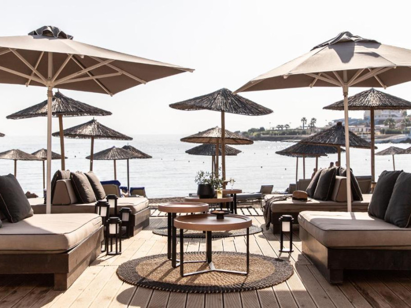 Oaspeții pot savura preparate din bucătăria internațională la restaurantul à la carte cu vedere la mare sau mancăruri grecești la taverna Dikti de pe malul mării. Hotelul pune la dispoziție in total 8 restaurante à la carte, pentru a satisface toate gusturile. Oaspeții trebuie să respecte un cod vestimentar la cină. Băuturile sunt servite la barul elegant cu șampanie și la diversele baruri de la piscină.