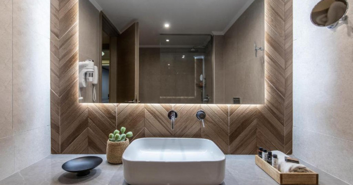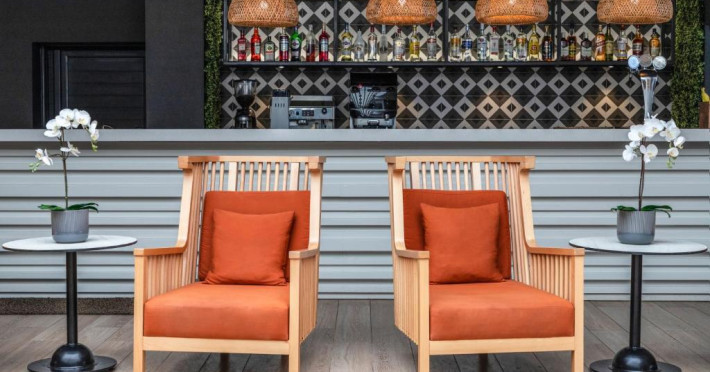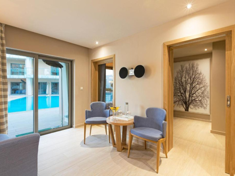 Piscina de dimensiuni olimpice este inconjurată de șezlonguri, iar piscina copiilor este situată langă cascadă. Oaspeții au la dispoziție un bar langă fiecare piscină. Bungalourile oferă acces la o piscină privată.