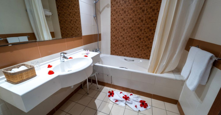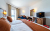 Toate camerele hotelului sunt dotate balcon sau terasa mobilata, aer condiționat, minibar (gol), TV, cadă/ duș, uscător de păr, articole de toaletă.