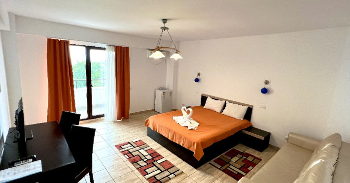 Apartamentul standard are 50 mp si este format din living, dormitor si baie. Are pat matrimonial si o canapea extensibila si aceleasi dotari ca si camera dubla. Are balcon cu vedere la mare. Capacitate de cazare: 4 persoane.