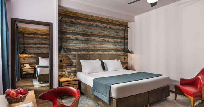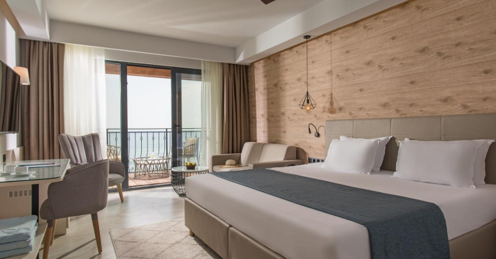 Toate camerele sunt mobilate modern şi elegant și dispun de paturi confortabile, canapea extensibilă, TV prin satelit, minibar (contra cost), fierbător electric cu ceai şi cafea (gratuit), seif (gratuit), acces gratuit la internet Wi-Fi, uscător de păr și baie cu o cabină de duș. Toate camerele au balcon cu vedere la mare sau la grădină.