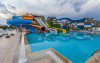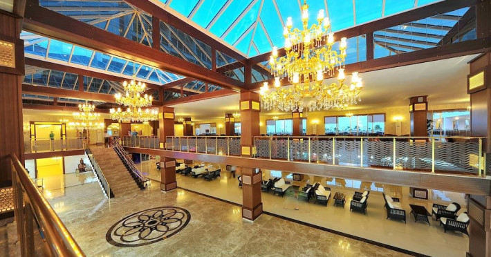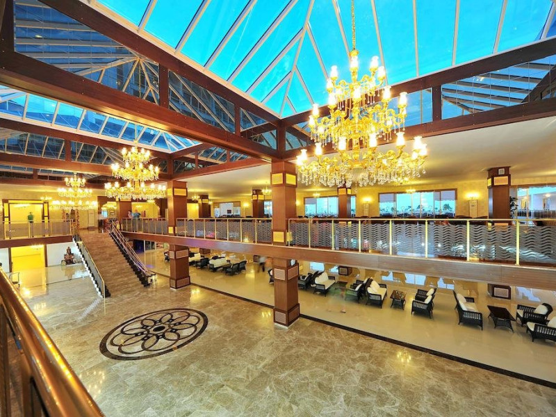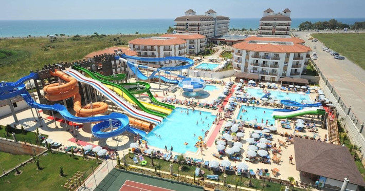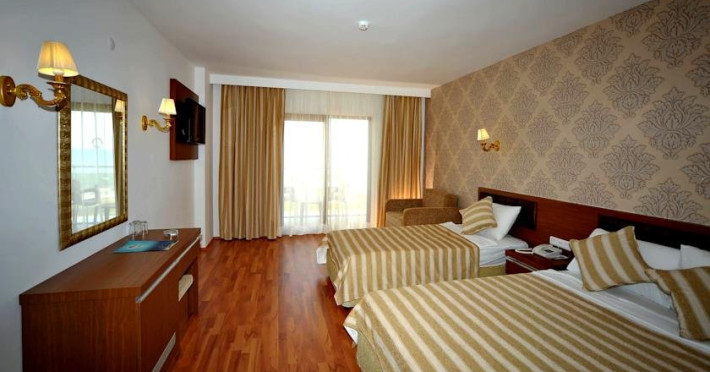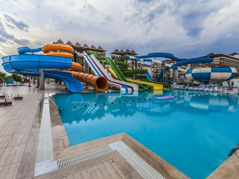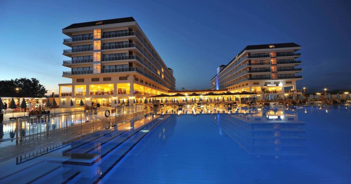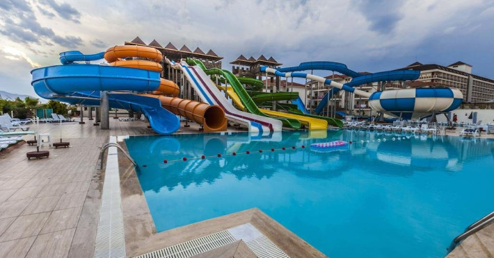 Descriere: Hotelul este construit pe un teritoriu cu o suprafata de 38500 mp si a fost deschis in anul 2011. Hotelul are in total 470 de camere repartizate in doua cladiri principale si 5 vile.Localizare: Hotelul este situat la aproximativ 18 km de orasul Alanya si la aproximativ 100 km fata de aeroportul Antalya.