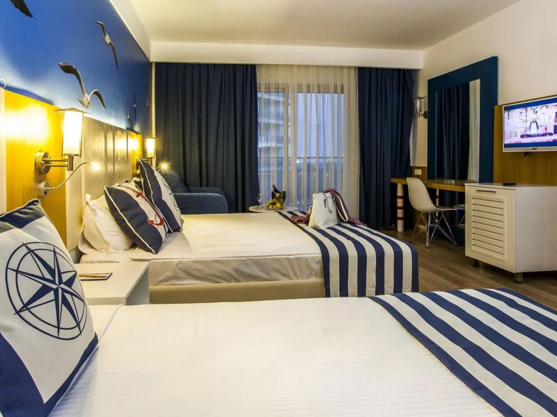 Hotelul nostru, care a fost deschis în 2014, este format din două clădiri principale cu 5 etaje pe o suprafață de 44.990 m2 si 3 vile dublex cu inot. Toate camerele noastre sunt decorate cu mobilier modern, cu tot ce ar putea avea nevoie oaspetii nostri pentru o vacanta placuta si placuta.