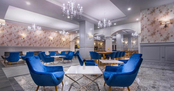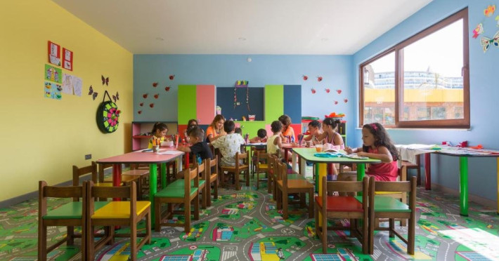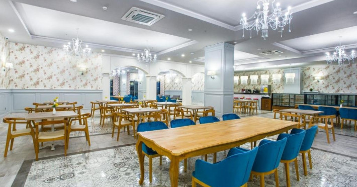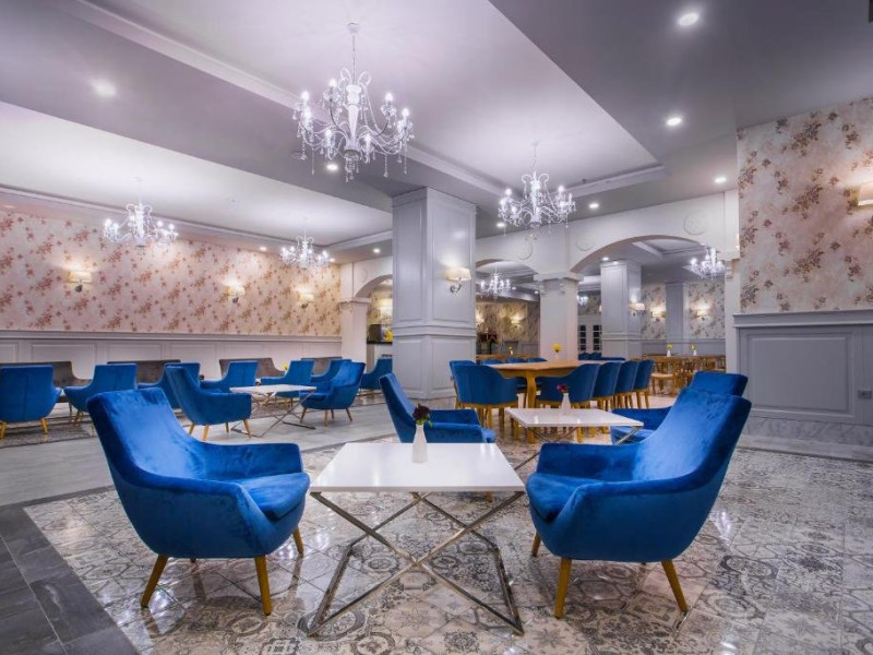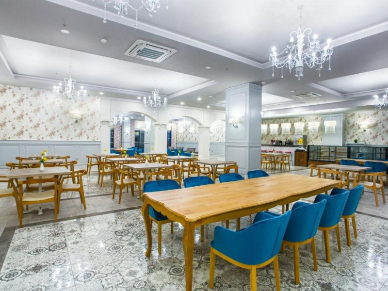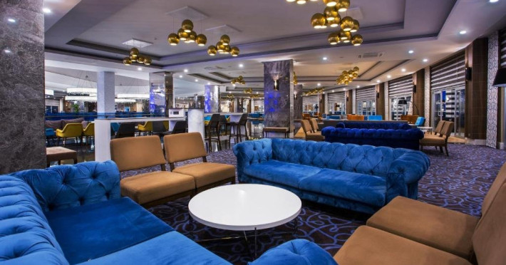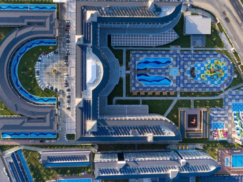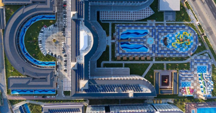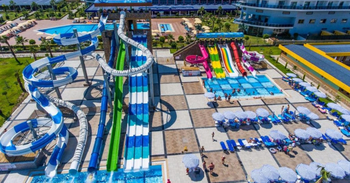 Facilitati hotel: Hotelul ofera oaspetilor sai urmatoarele facilitati: restaurant principal, 2 restaurante a la carte, 5 baruri, discoteca, piscina exterioara pentru adulti si copii, aquapark cu tobogane pentru adulti si copii, piscina interioara pentru adulti si copii, program de animatie, muzica live, sauna, centru fitness, internet wi-fi, volei pe plaja, darts, tenis de masa, teren de fotbal, mini club, loc de joaca.
