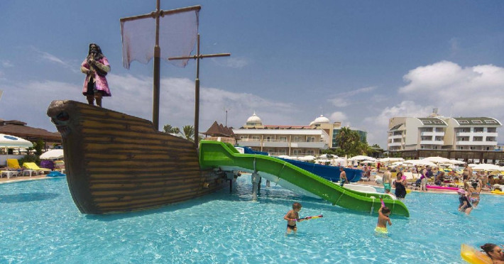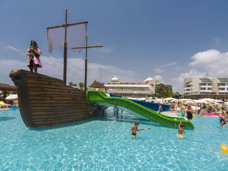 Facilitati hotel: Oaspetii pot beneficia de restaurant principal, 4 restaurante a la carte (italian, turcesc), baruri, patiserie, piscine interioare si exterioare ,piscina cu tobogane pentru, centru Spa, baie turceasca, sauna, loc de joaca pentru copii, muzica live, teren de tenis, darts, basket, centru fitness, volei pe plaja, aerobic in piscina, programe de animatie. Servicii cu plata: bauturi premium locale sau de import, sporturi nautice motorizate (ski jet, banana, parasailing etc), biliard, inchiriere echipament pentru tenis echipament, centru spa si de infrumusetare (solar, masaje, peeling), magazine, piscina pentru copii, tobogane, miniclub, loc de joaca.