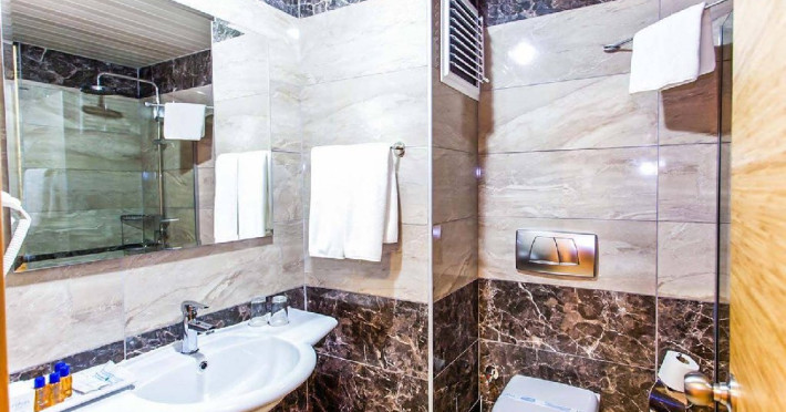 Dotari camere: Hotelul are un total de 290 de camere, toate dotate cu telefon, TV LCD satelit, minibar, aer conditionat centralizat, seif, baie privata, uscator de par, parchet, facilitate pentru preparare cafea si ceai.