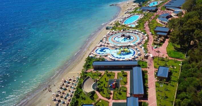 Hotelul oferă numeroase facilități, printre care un restaurant principal, două restaurante a la carte, diverse baruri, o patiserie, piscine interioare și exterioare pentru adulți și copii, tobogane de apă, un centru SPA cu baie turcească și saună, un loc de joacă pentru copii, divertisment live, terenuri de tenis, darts, baschet, centru de fitness, volei pe plajă, activități de aerobic la piscină, acces Wi-Fi gratuit și facilități de parcare.