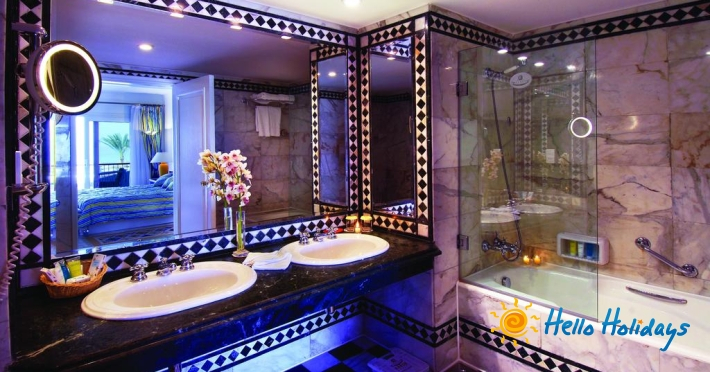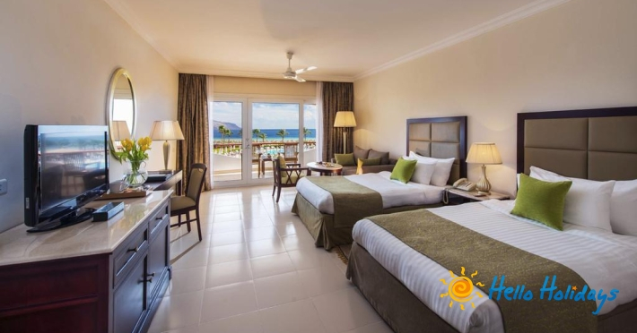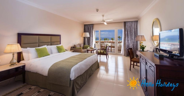 Camerele dispun de lenjerie de pat din bumbac egiptean 100%, balcon cu vedere la Marea Roşie sau la grădinile complexului, TV prin satelit, seif, mini bar, telefon, dacilitati pentru prepararea de ceai si cafea, internet contra cost, uscator de par, halate de baie, camere de nefumatori.