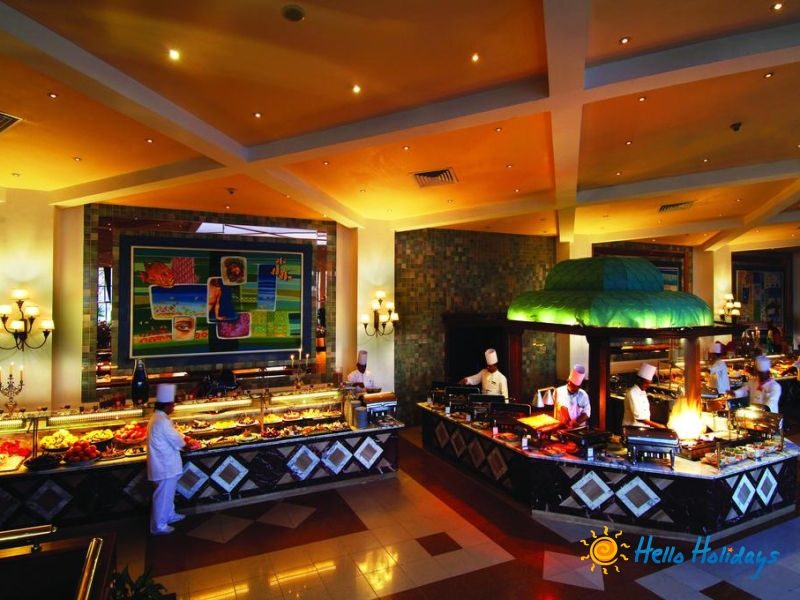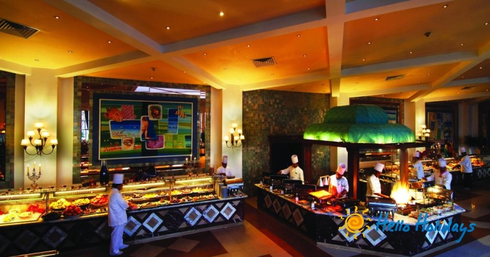 Oaspetii au la dispozitie o varietate foarte mare de restaurante internationale si a la carte, astfel incat experienta gastronomica sa fie unica: 5 restaurante a la carte, pool restaurant & bar, restaurant & lounge la plaja, lobby bar non-stop, piano lounge exclusive, dance bar, billiard bar si internet café.