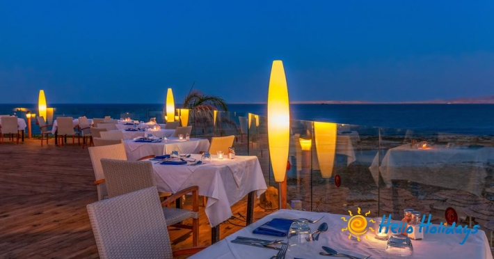 Micul dejun poate fi savurat pe terasa de pe plajă de la Cleopatra, iar Red Sea Wharf servește mâncăruri din fructe de mare. Complexul are 3 baruri, pub modern și club de noapte. De asemenea, se oferă spectacole.