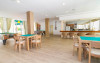 About 200 m from a sandy beach and approximately 150 m from the sea lies the hotel Eix Alcudia Hotel - Adults Only. The nearest restaurants and bars can be reached in a few minutes on foot. The old town is around 2 km away. You can find a range of shops and a supermarket directly on your doorstep. Near the beach there is a promenade where you can go for a stroll. The air-conditioned hotel is equipped with a 24h reception (check-in is possible around the clock), a lounge, a lobby, Wi-Fi, 2 lifts, a jacuzzi as well as parking spaces. In the outdoor area of the property you will find a garden as well as a pool that is open seasonally (open all year), where sun loungers, sun umbrellas and pool towels are available for free. Furthermore, you can relax outdoors on a terrace. You can store your luggage in the hotel's storage room. There is also a laundry service. For your comfort there is a concierge service. If necessary, you can contact the medical centre (for a fee). Guests at the accommodation can get a wake-up call from the hotel personnel. For conventions and other business meetings, the hotel offers a business centre with printer. If you want to explore the holiday region, you can use the car and motorbike rental service close to the hotel (extra fee). In addition, the hotel sells tickets excursions. In your hotel, a lot of focus is placed on sustainability. This includes among others the hotel`s own recycling bins. Due to its barrier-free facilities , such as barrier-free entrances, wheelchair accessible rooms and wheelchair-accessible bathrooms, the hotel is also suitable for wheelchair users (dimensions: entrance door width: 80 m, lift door width: 80 m). Catering As catering services the hotel offers half board and breakfast only. Breakfast is offered from the buffet. Dinner is also served as a buffet (extras on request). For the meals, there are a buffet restaurant with terrace (calorie-reduced and gluten-free dishes) and a bar, the cafeteria as well as the pool bar. Distances- Nearest town: approx. 60 km
