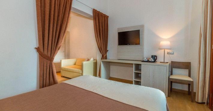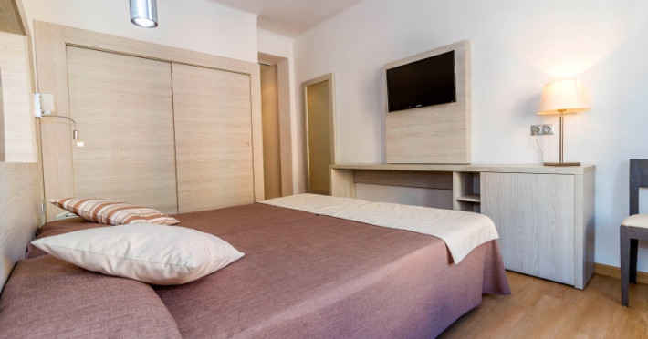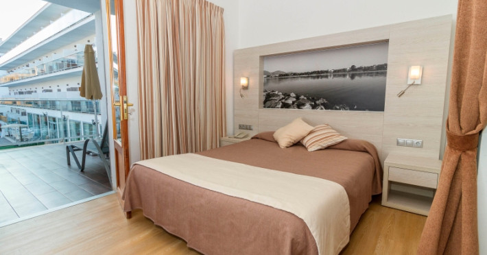 About 200 m from a sandy beach and approximately 150 m from the sea lies the hotel Eix Alcudia Hotel - Adults Only. The nearest restaurants and bars can be reached in a few minutes on foot. The old town is around 2 km away. You can find a range of shops and a supermarket directly on your doorstep. Near the beach there is a promenade where you can go for a stroll. The air-conditioned hotel is equipped with a 24h reception (check-in is possible around the clock), a lounge, a lobby, Wi-Fi, 2 lifts, a jacuzzi as well as parking spaces. In the outdoor area of the property you will find a garden as well as a pool that is open seasonally (open all year), where sun loungers, sun umbrellas and pool towels are available for free. Furthermore, you can relax outdoors on a terrace. You can store your luggage in the hotel's storage room. There is also a laundry service. For your comfort there is a concierge service. If necessary, you can contact the medical centre (for a fee). Guests at the accommodation can get a wake-up call from the hotel personnel. For conventions and other business meetings, the hotel offers a business centre with printer. If you want to explore the holiday region, you can use the car and motorbike rental service close to the hotel (extra fee). In addition, the hotel sells tickets excursions. In your hotel, a lot of focus is placed on sustainability. This includes among others the hotel`s own recycling bins. Due to its barrier-free facilities , such as barrier-free entrances, wheelchair accessible rooms and wheelchair-accessible bathrooms, the hotel is also suitable for wheelchair users (dimensions: entrance door width: 80 m, lift door width: 80 m). Catering As catering services the hotel offers half board and breakfast only. Breakfast is offered from the buffet. Dinner is also served as a buffet (extras on request). For the meals, there are a buffet restaurant with terrace (calorie-reduced and gluten-free dishes) and a bar, the cafeteria as well as the pool bar. Distances