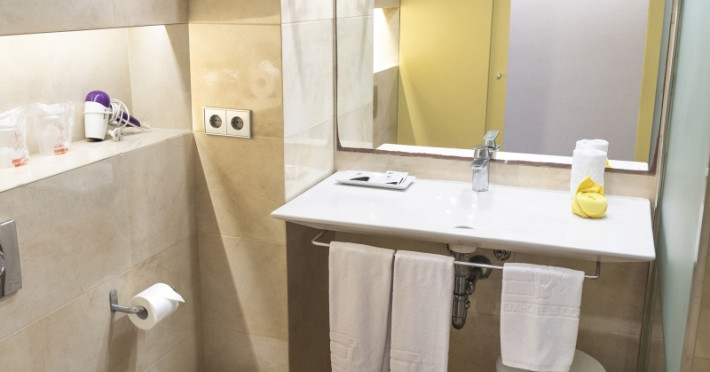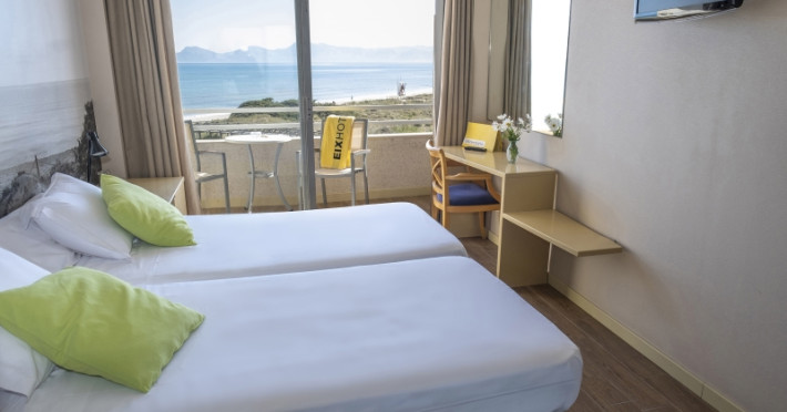 Around 200 m from a sandy beach is located the apart hotel Eix Platja Daurada. The nearest bars and restaurants can be found at a distance of around 300 m. The old town is around 6 km away. The nearest shops you can reach within around 300 m, a supermarket is around 200 m away. In the surrounding a disco (approx. 500 m away), a theatre (approx. 60 km), a cinema (approx. 50 km) and a golf course (approx. 7 km) offer entertainment for holidaymakers. The beach is patrolled by a lifeguard. Directly next to the beach there is a promenade where you can take leisurely walks. The air-conditioned hotel has a 24h reception (check-in is possible around the clock), a lobby, Wi-Fi, a lift, a supermarket and other shops, a jacuzzi, showers and changing rooms, a first aid kit as well as a TV lounge with satellite TV. In the outdoor area you will find a garden as well as a seasonally open, heated pool, where you can rent pool towels for a fee and sun loungers and sun umbrellas are available for free. There is also a children's pool. Furthermore, outside you can find a terrace. Inside the hotel you can use an indoor pool. Highchairs and kid`s chairs are available. Cots are available for a fee. You can store your luggage in the hotel's storage room. To clean your clothes there is a laundry service. For your comfort there is a concierge service. If necessary, you can contact the medical centre at any time (for a fee). Guests at the accommodation can get a wake-up call from the hotel personnel. For conventions and other business meetings, the hotel offers a conference area (extra fee) with a total of 50 seats, printer as well as overhead projector. If you want to explore the holiday region, you can use the car and motorbike rental service close to the hotel (extra fee). In your hotel, a lot of focus is placed on sustainability. This includes among others the hotel`s own recycling bins. Due to its barrier-free facilities , such as barrier-free entrances and wheelchair accessible rooms, the hotel is also suitable for wheelchair users (dimensions: entrance door width: 80 m, lift door width: 80 m). Catering As catering services the hotel offers half board. Breakfast is offered from the buffet. Enjoy your lunch à la carte (extras on request). Dinner is also served as a buffet (extras on request). For the meals, there are a buffet restaurant with terrace (gluten-free and vegetarian dishes) and the cafeteria as well as the pool bar. For dinner, guests are asked to wear appropriate clothing in the restaurant. Distances- Nearest town: approx. 60 km