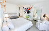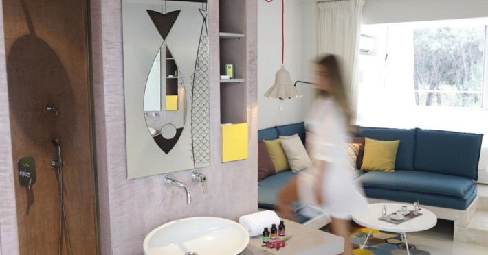 Fiecare cameră dispune de minibar. Oaspeții pot solicita serviciul de room service pentru a servi masa sau diverse băuturi. Unele camere au balcon cu vedere la grădină sau la piscină. În camere există baie cu cadă sau duș ce are în dotare foehn și articole de toaletă gratuite. Camerele de la Ekies All Senses Resort sunt dotate cu aer condiționat, Tv cu canale prin satelit și seif. Curățenia in cameră se face zilnic. Toate camerele spațioase de la Ekies All Senses Resort au canapea în living, ceea ce oferă un plus de confort. Fiecare unitate de cazare are frigider. De asemenea, este disponibilă o zonă de luat masa. Proprietatea oferă camere pentru familie cu o suprafață mai mare și un număr mai mare de paturi față de cele standard. Se pot rezerva de asemenea camere pentru nefumători.