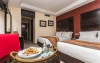 Dotari camere: Hotelul El Andalous Lounge & Spa detine 195 de camere, inclusiv 10 apartamente, situate intr-o cladire in stil andaluz de 5 etaje (cu lifturi). Toate camerele sunt dotate cu aer conditionat, wifi, seif, TV satelit, telefon, minibar, baie cu dus/cada, uscator de par, articole de toaleta, balcon.