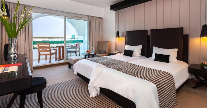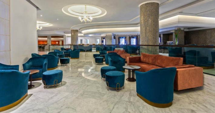 Facilitati hotel:Hotelul ofera o gama variata de restaurante si baruri: Les Mimosas pentru servire tip bufet, restaurantul Ala carte El Fell, pizzeria El Bahia si restaurantul de pe plaja, precum si barul Camelia, barul cu pian Dahlia si un bar langa piscina. De asemenea, are un cafAS maure, Le Jasmin, si un club de noapte, Le Palace. Doua piscine in aer liber, una pentru adulti si cealalta pentru copii, o piscina acoperita cu jacuzzi si o zona pentru copii. Hotelul ofera o gama larga de activitati de agrement: trei terenuri de tenis dintre care doua sunt iluminate, boccia, tir cu sageti si volei pe plaja, precum si sporturi acvatice: windsurfing si barci cu panze. Programe de divertisment in timpul zilei si seara, un mini-club pentru copii (5-12 ani) si un centru de fitness cu sala de fitness, masaje, hamam si sauna. Ateliere de olarie si obiecte din alama sunt disponibile.Hotelul dispune de un centru de congrese care include o sala mare, Carthage, cu o capacitate de pana la 750 de persoane, si patru sali modulare pentru subcomisii. Toate camerele sunt dotate cu echipamente audiovizuale de inalta performanta, plus o echipa experimentata de tehnicieni. Un parc de masini privat este disponibil pentru oaspeti.